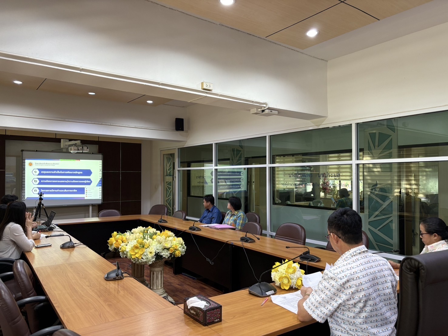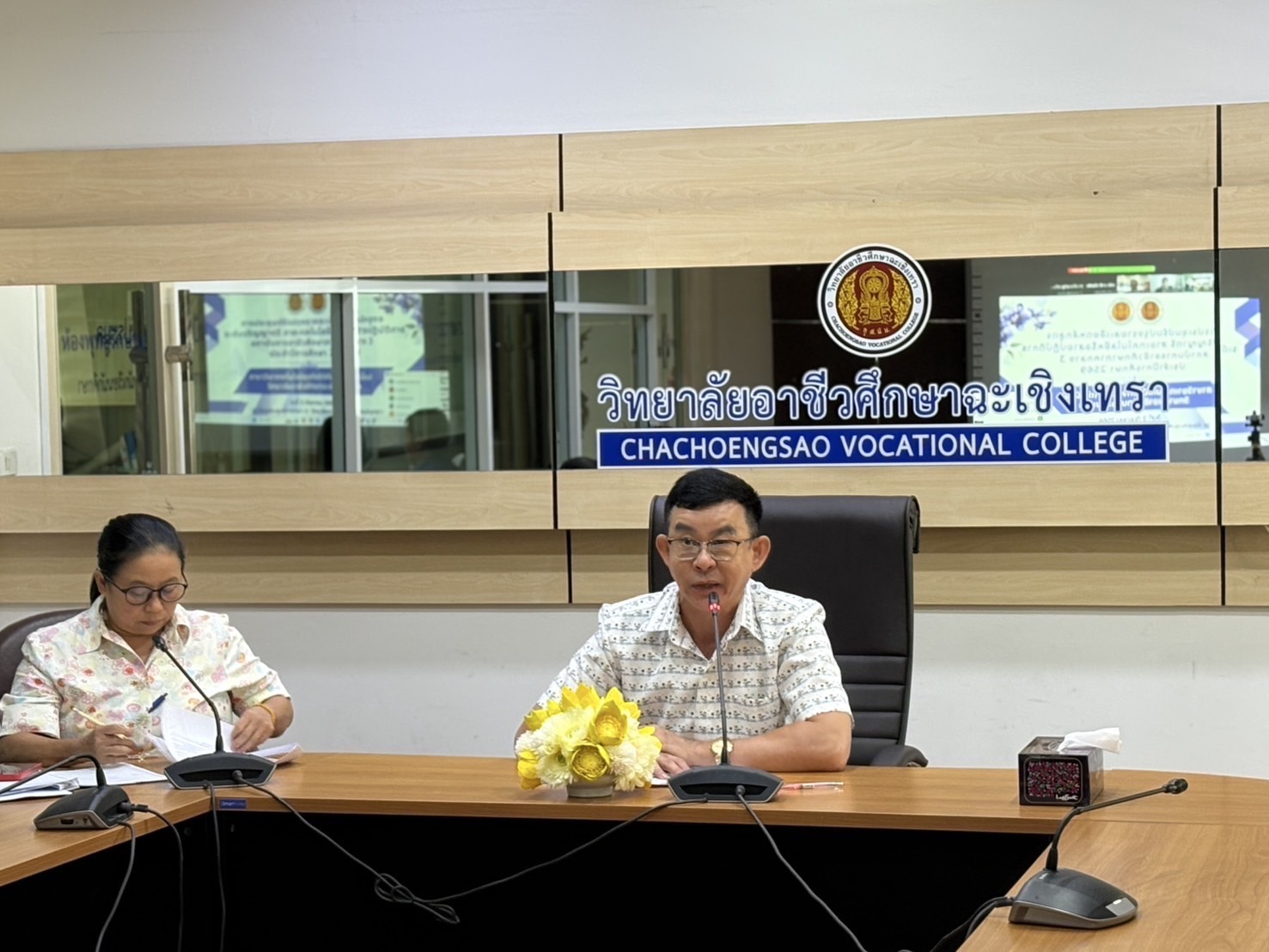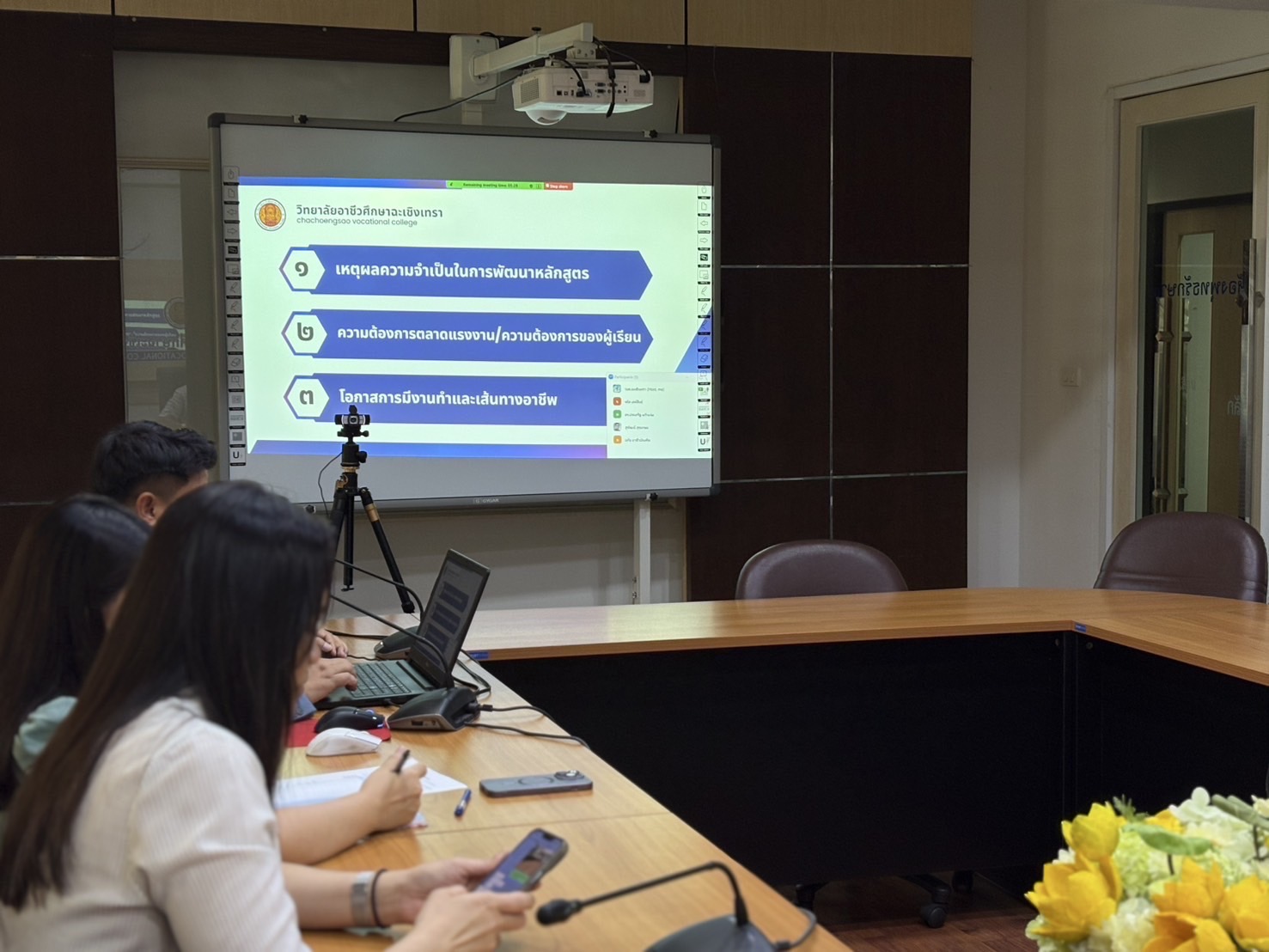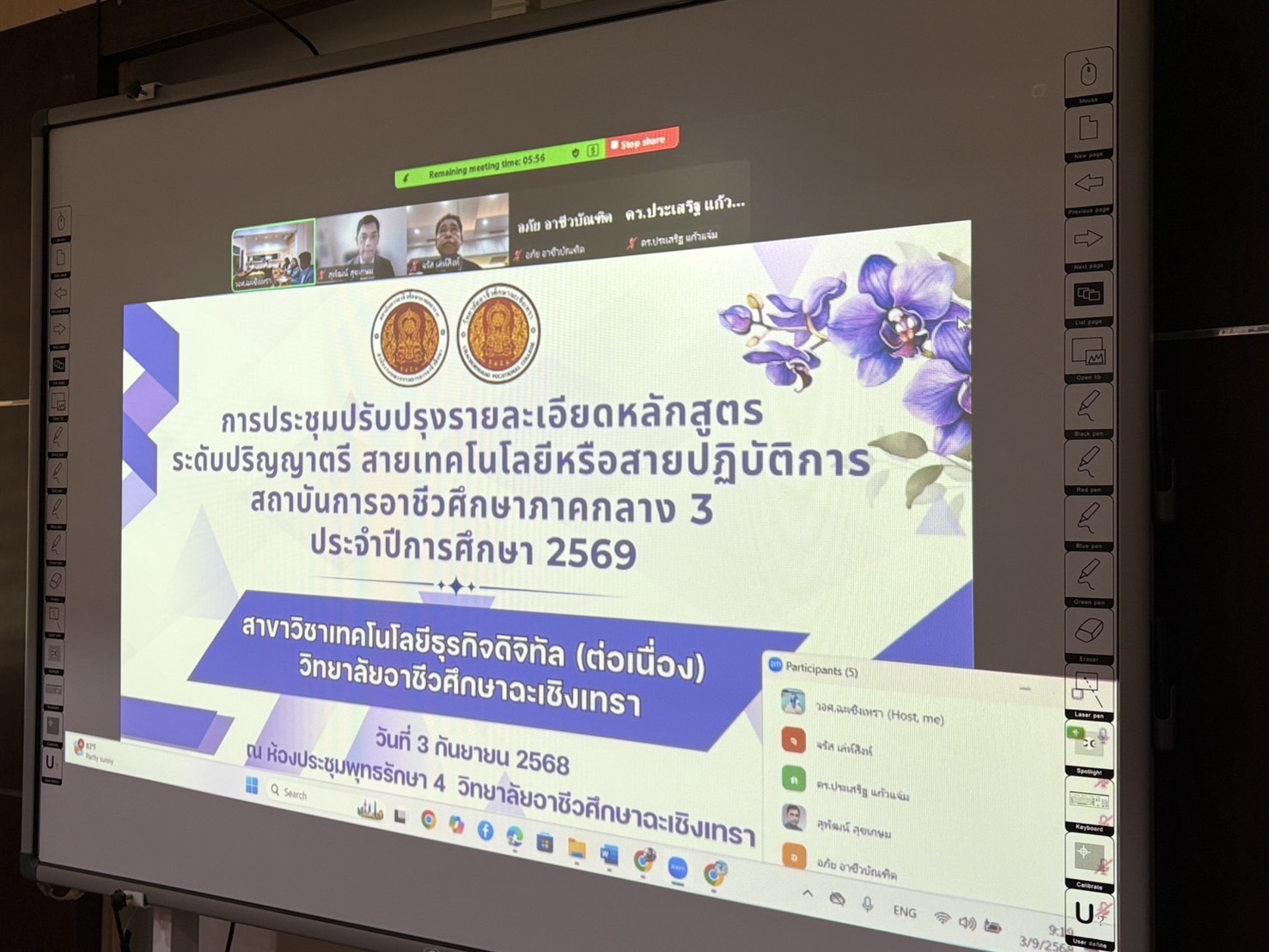 ดร.สุพจน์ ทองเหลือง ผู้อำนวยการ (วิทยฐานะเชี่ยวชาญ) วิทยาลัยอาชีวศึกษาฉะเชิงเทรา พร้อมด้วยคณะผู้บริหาร และคณะครู จัดประชุมการปรับปรุงรายละเอียดหลักสูตรระดับปริญญาตรี สายเทคโนโลยีหรือสายปฏิบัติการ สถาบันการอาชีวศึกษาภาคกลาง ๓ สาขาวิชาเทคโนโลยีธุรกิจดิจิทัล (ต่อเนื่อง) ร่วมกับการประชุมรูปแบบออนไลน์ ในวันที่ ๓ กันยายน ๒๕๖๘