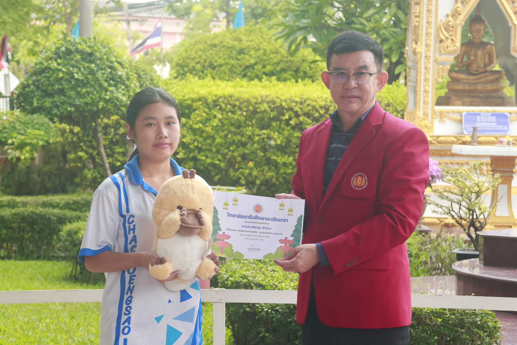 ดร.สุพจน์ ทองเหลือง ผู้อำนวยการ (วิทยฐานะเชี่ยวชาญ) วิทยาลัยอาชีวศึกษาฉะเชิงเทรา พร้อมด้วยคณะผู้บริหาร ครู บุคลากรทางการศึกษา และนักเรียน นักศึกษา ร่วมแสดงความยินดีกับ นักเรียน นักศึกษา ที่ได้รับรางวัล จากโครงการ “รักการอ่าน” ในวันที่ ๔ กันยายน ๒๕๖๘ ณ วิทยาลัยอาชีวศึกษาฉะเชิงเทรา