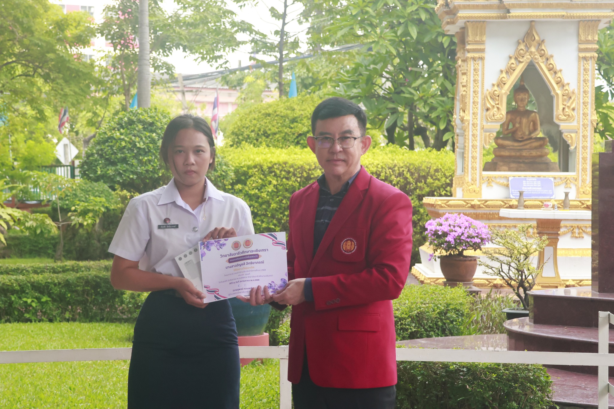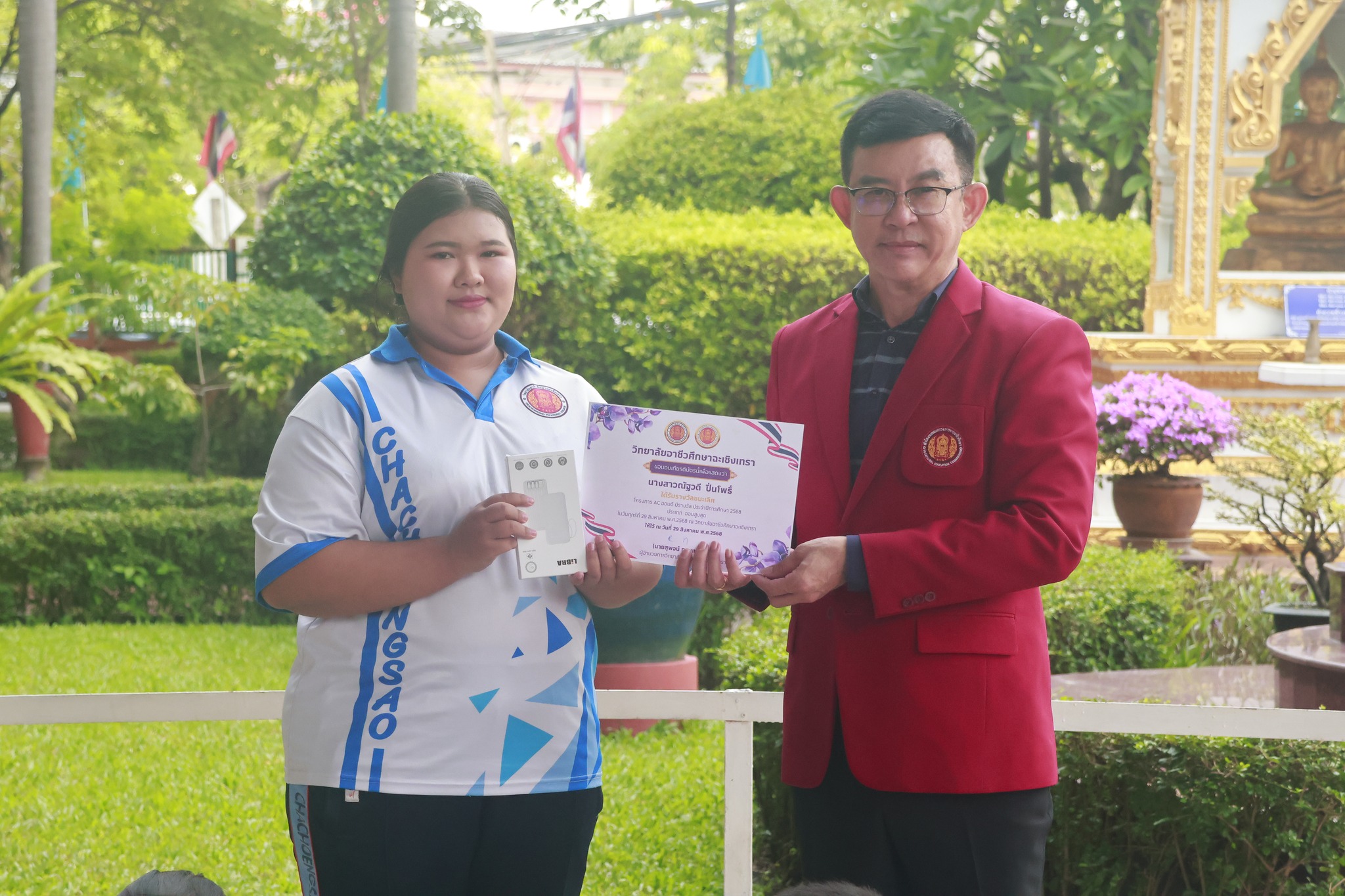 ดร.สุพจน์ ทองเหลือง ผู้อำนวยการ (วิทยฐานะเชี่ยวชาญ) วิทยาลัยอาชีวศึกษาฉะเชิงเทรา พร้อมด้วยคณะผู้บริหาร ครู บุคลากรทางการศึกษา และนักเรียน นักศึกษา ร่วมแสดงความยินดีกับ นักเรียน นักศึกษา ที่ได้รับรางวัลจากโครงการ AC ออมดีมีรางวัล โดยชมรมวิชาชีพการบัญชี