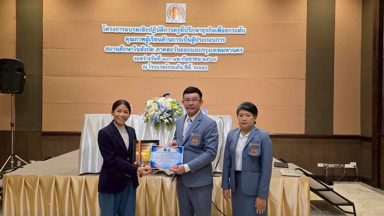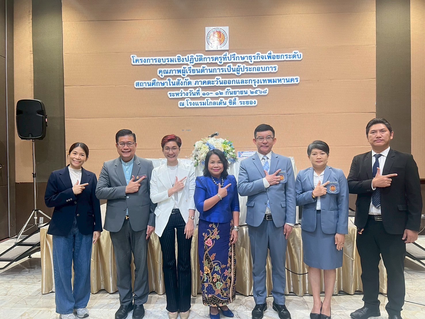 ดร.สุพจน์ ทองเหลือง ผู้อำนวยการ (วิทยฐานะเชี่ยวชาญ) วิทยาลัยอาชีวศึกษาฉะเชิงเทรา พร้อมด้วยคณะผู้บริหาร ครู และบุคลากรทางการศึกษา จัดพิธีเปิดโครงการอบรมเชิงปฏิบัติการครูที่ปรึกษาธุรกิจเพื่อยกระดับคุณภาพผู้เรียนด้านการเป็นผู้ประกอบการ ในวันพุธที่ ๑๐ กันยายน ๒๕๖๘ ณ โรงแรมโกลเด้น ซิตี้ จังหวัดระยอง