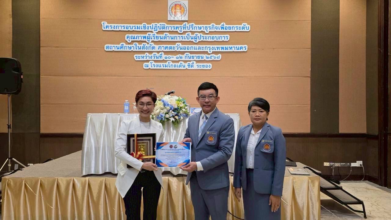 ดร.สุพจน์ ทองเหลือง ผู้อำนวยการ (วิทยฐานะเชี่ยวชาญ) วิทยาลัยอาชีวศึกษาฉะเชิงเทรา พร้อมด้วยคณะผู้บริหาร ครู และบุคลากรทางการศึกษา จัดพิธีเปิดโครงการอบรมเชิงปฏิบัติการครูที่ปรึกษาธุรกิจเพื่อยกระดับคุณภาพผู้เรียนด้านการเป็นผู้ประกอบการ ในวันพุธที่ ๑๐ กันยายน ๒๕๖๘ ณ โรงแรมโกลเด้น ซิตี้ จังหวัดระยอง