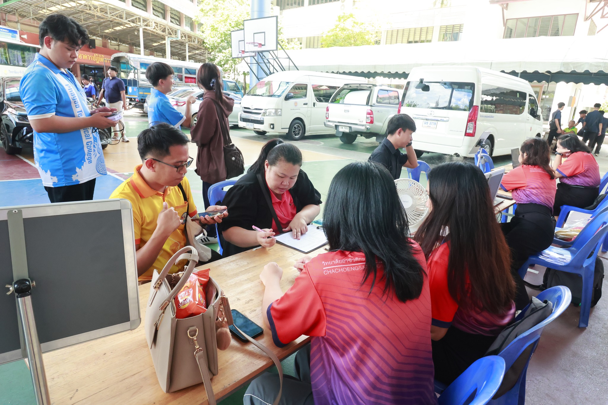 บรรยากาศการลงทะเบียนทีมเข้ารับการประเมิน งาน OVEC Expo มหกรรมผลิตภัณฑ์อาชีวะ ชิม ช้อป ใช้ ภายใต้โครงการประเมินผลการดำเนินงานศูนย์บ่มเพาะผู้ประกอบการอาชีวศึกษา ระดับชาติ ประจำปีงบประมาณ 2568 ในวันที่ ๑๙ กันยายน ๒๕๖๘ ณ วิทยาลัยอาชีวศึกษาฉะเชิงเทรา