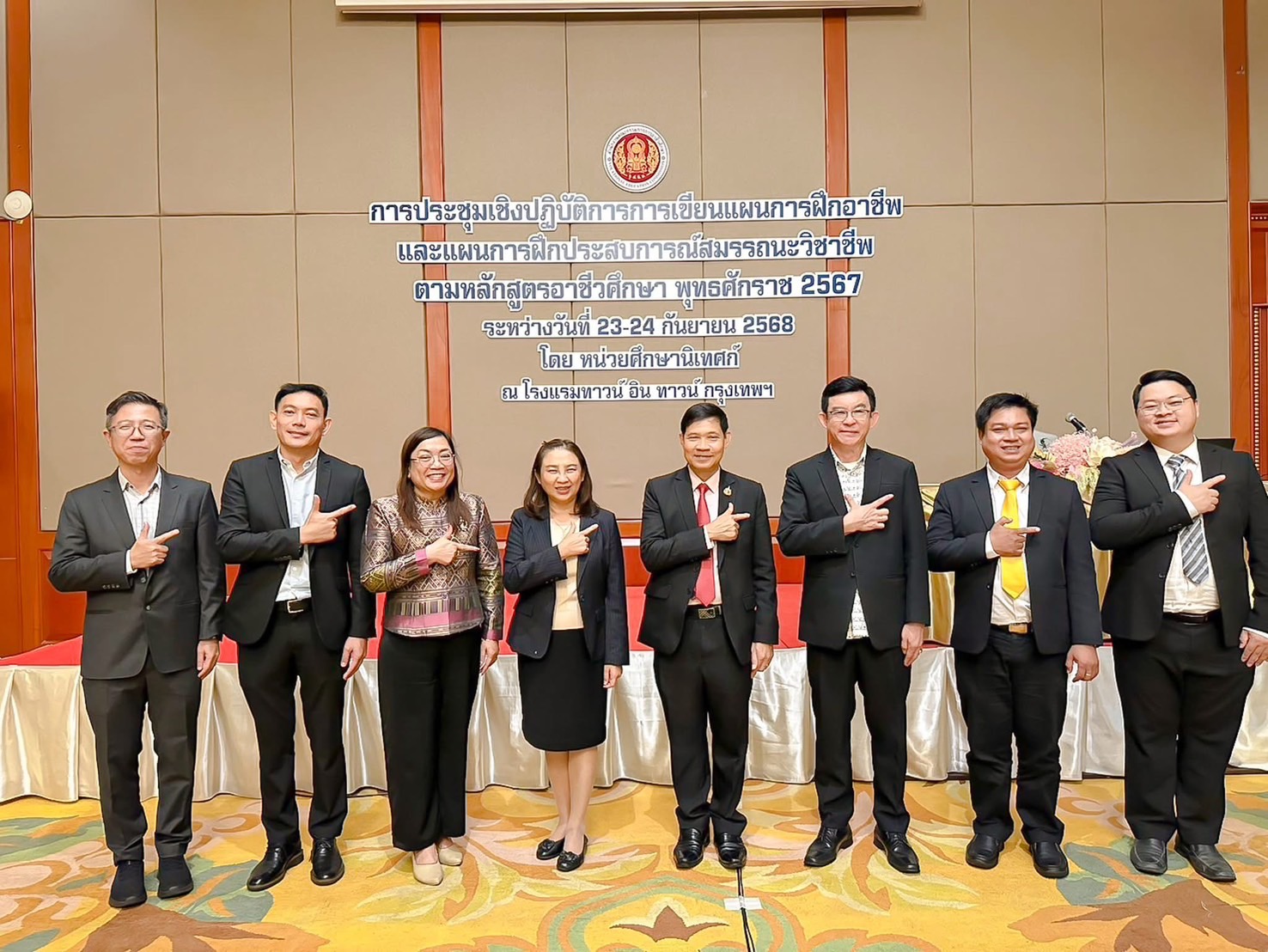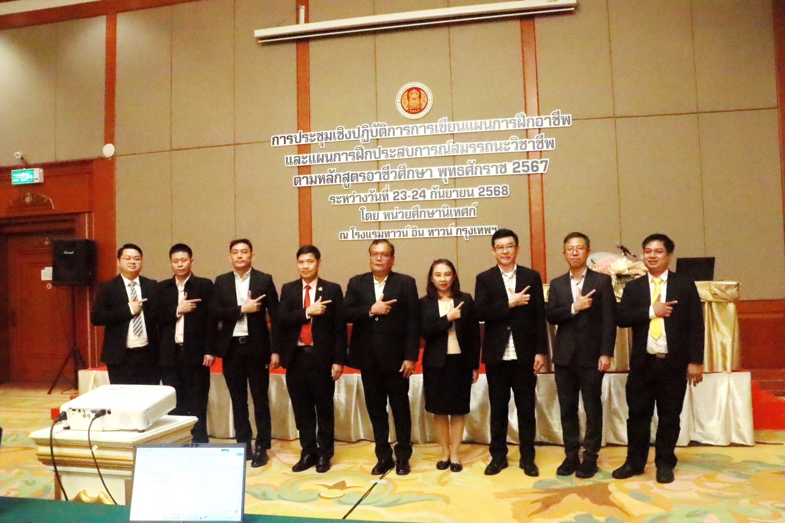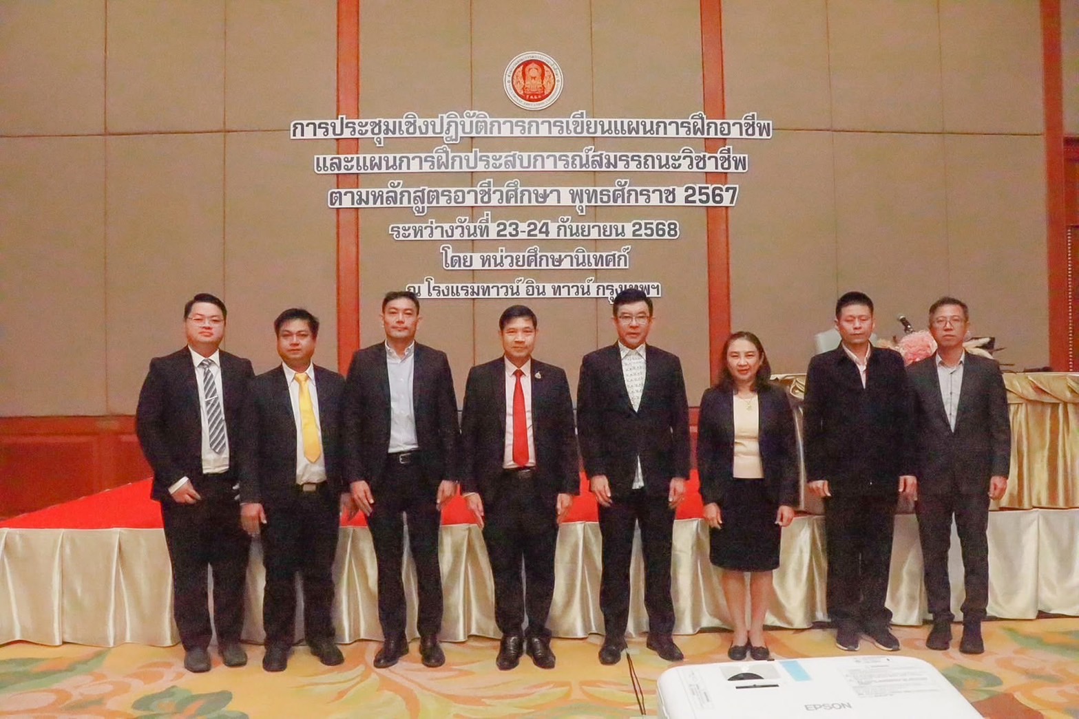 วันที่ ๒๓ กันยายน ๒๕๖๘ ดร.สุพจน์ ทองเหลือง ผู้อำนวยการ(วิทยฐานะเชี่ยวชาญ) วิทยาลัยอาชีวศึกษาฉะเชิงเทรา เป็นคณะกรรมการจัดการประชุมเชิงปฏิบัติการการเขียนแผนการฝึกอาชีพและแผนการฝึกประสบการณ์สมรรถนะวิชาชีพ ตามหลักสูตรอาชีวศึกษา พุทธศักราช ๒๕๖๗ พร้อมด้วยคณะผู้บริหาร คณะครูและบุคลากรทางการศึกษา เข้าร่วมโครงการฯ