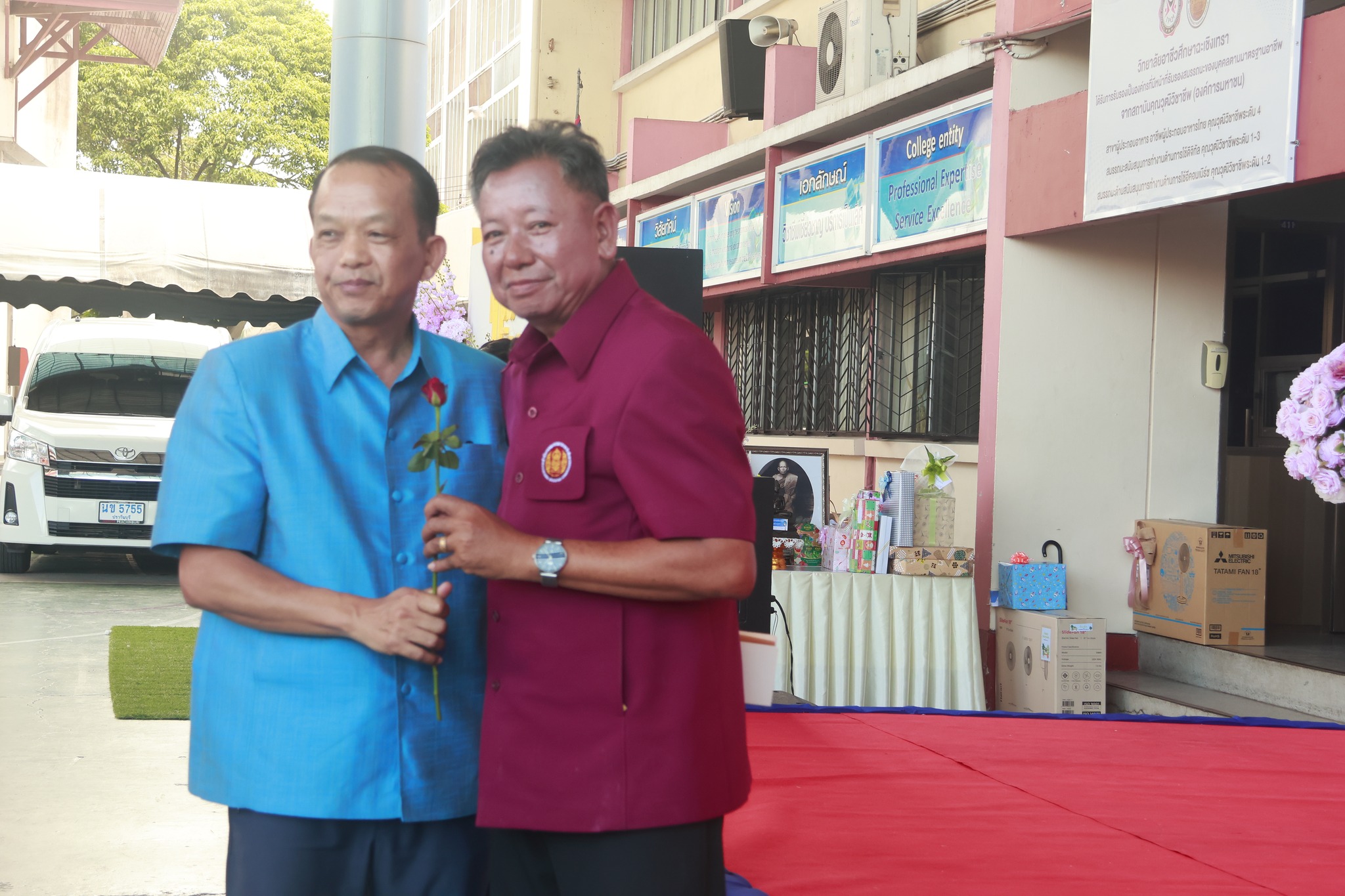 ดร.สุพจน์ ทองเหลือง ผู้อำนวยการ(วิทยฐานะเชี่ยวชาญ) วิทยาลัยอาชีวศึกษาฉะเชิงเทรา พร้อมด้วยคณะผู้บริหาร ครู บุคลากรทางการศึกษา และแขกผู้เกียรติ ร่วมงานเกษียณอายุราชการ รองผู้อำนวยการฯ นายชำนาญ แสงทอง (วิทยฐานะชำนาญการพิเศษ)