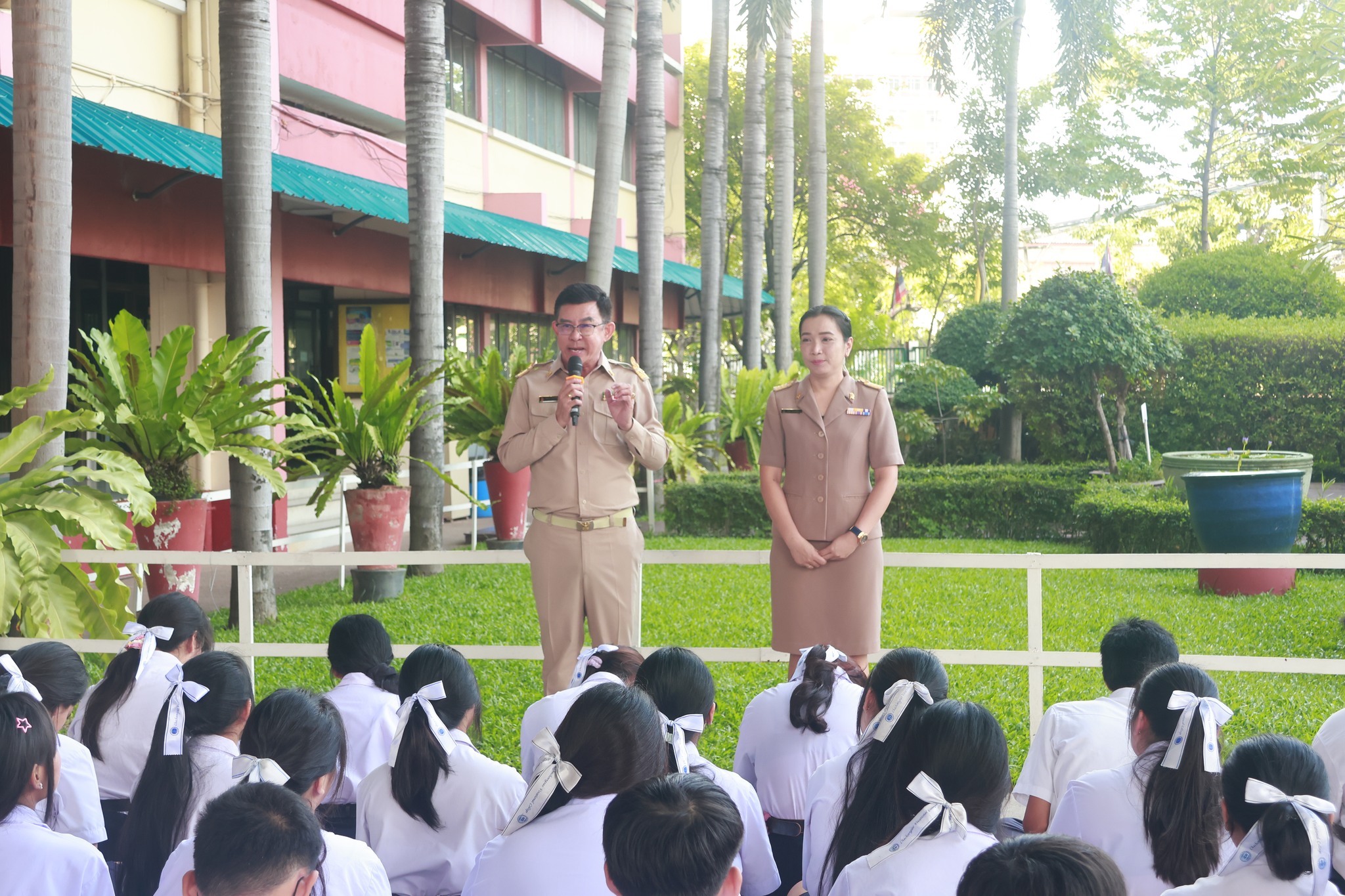 ดร.สุพจน์ ทองเหลือง ผู้อำนวยการ (วิทยฐานะเชี่ยวชาญ) วิทยาลัยอาชีวศึกษาฉะเชิงเทรา กล่าวต้อนรับและแนะนำครู พัชรา ทองเหลื่อม แผนกวิชาการจัดการสำนักงาน ที่ย้ายมาปฏิบัติหน้าที่ครูผู้สอน ณ วิทยาลัยอาชีวศึกษาฉะเชิงเทรา ในช่วงกิจกรรมเข้าแถวตอนเช้า และได้กล่าวทักทายคณะผู้บริหาร ครู บุคลากรทางการศึกษา และนักเรียน นักศึกษา ในวันเปิดภาคเรียน ภาคเรียนที่ ๒ ปีการศึกษา ๒๕๖๘ วันที่ ๒๐ ตุลาคม ๒๕๖๘ ณ ลานพุทธรักษา วิทยาลัยอาชีวศึกษาฉะเชิงเทรา
