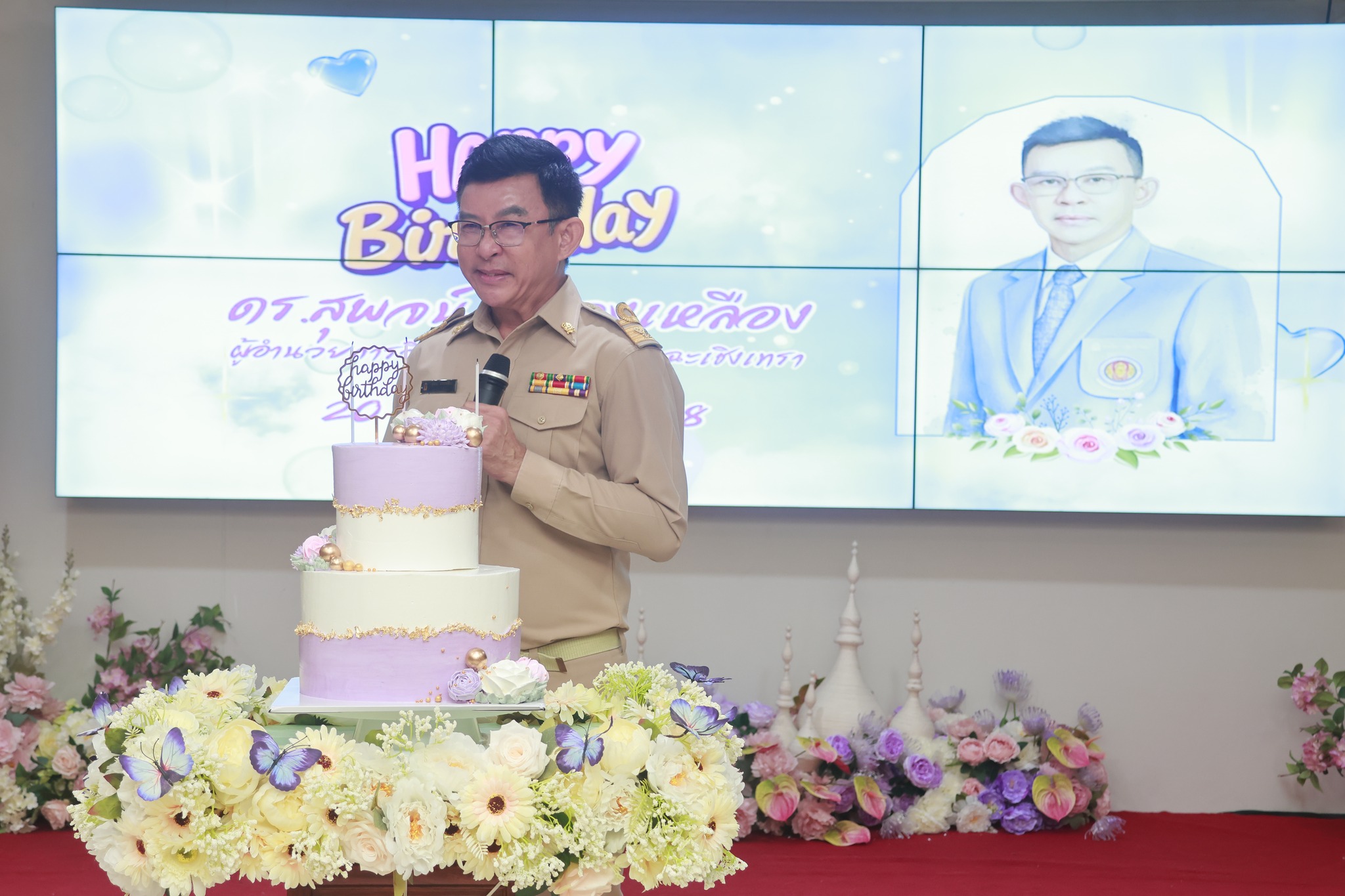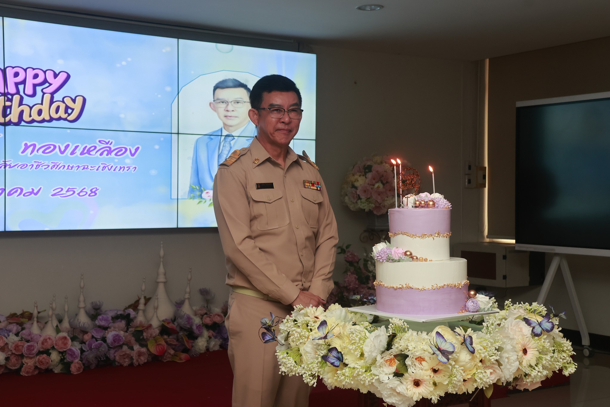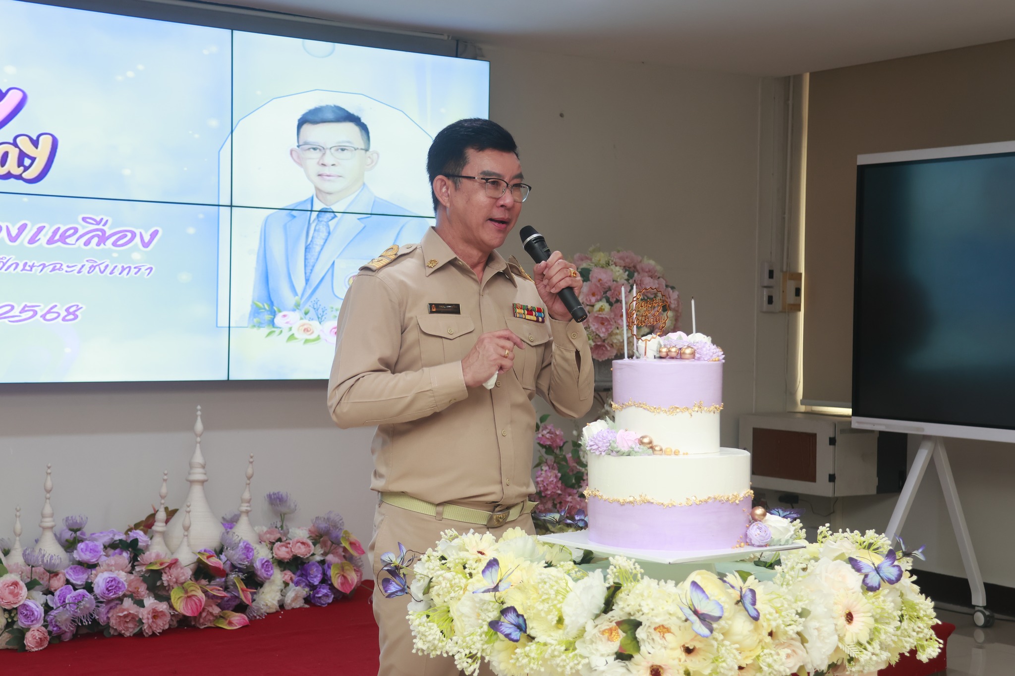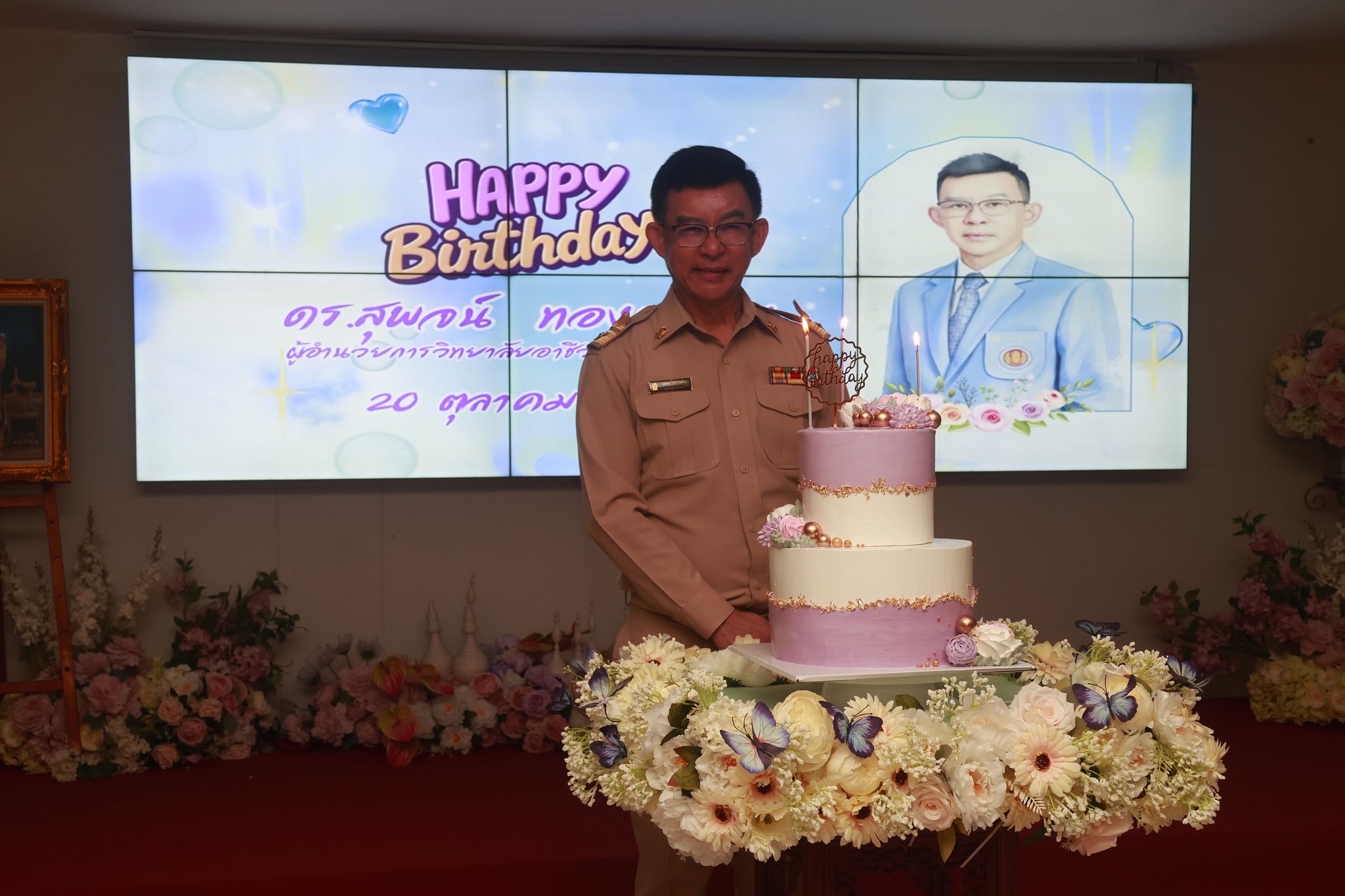 วิทยาลัยอาชีวศึกษาฉะเชิงเทรา นำโดย คณะผู้บริหาร ครู และบุคลากรทางการศึกษา ร่วมอวยพรในวันคล้ายวันเกิด ดร.สุพจน์ ทองเหลือง ผู้อำนวยการวิทยาลัยอาชีวศึกษาฉะเชิงเทรา ในวันที่ ๒๐ ตุลาคม ๒๕๖๘ ณ ห้องพุทธรักษา ๓ วิทยาลัยอาชีวศึกษาฉะเชิงเทรา