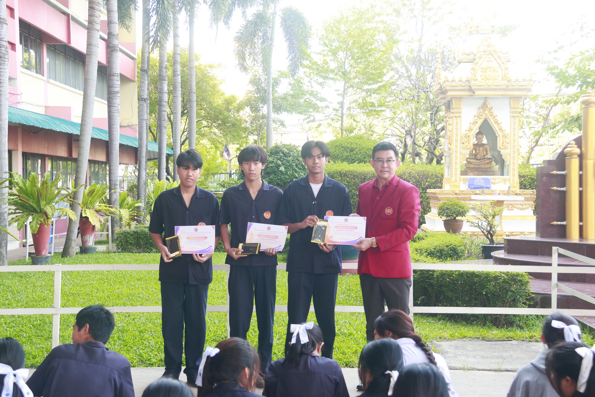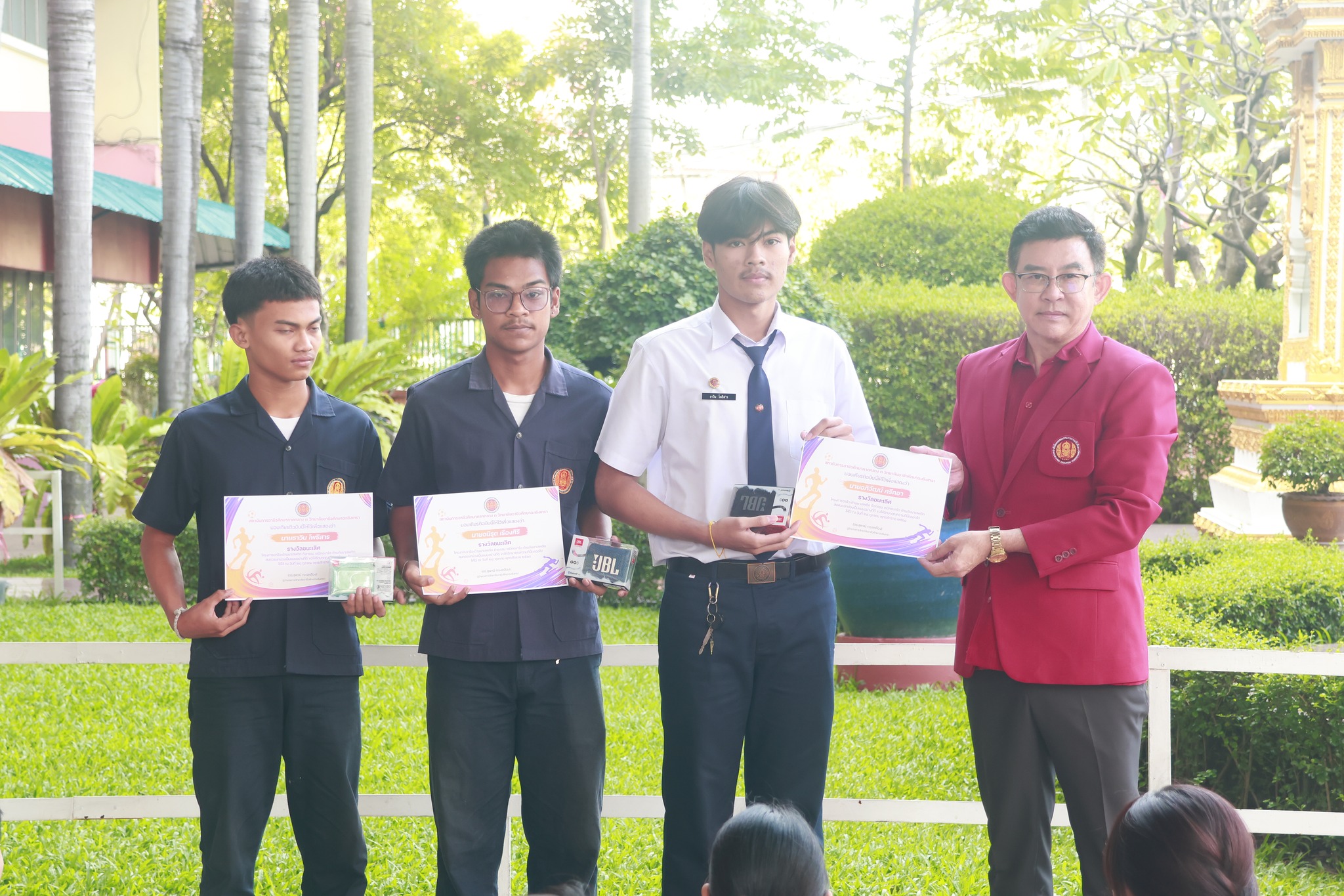 ดร.สุพจน์ ทองเหลือง ผู้อำนวยการ (วิทยฐานะเชี่ยวชาญ) วิทยาลัยอาชีวศึกษาฉะเชิงเทรา มอบเกียรติบัตรและแสดงความยินดีกับตัวแทนนักเรียน นักศึกษา ที่เข้าร่วมกิจกรรม เซปักตะกร้อต้านภัยยาเสพติด ภายใต้โครงการอาชีวะต้านยาเสพติด ในวันที่ ๒๔ ตุลาคม ๒๕๖๘ ณ วิทยาลัยอาชีวศึกษาฉะเชิงเทรา