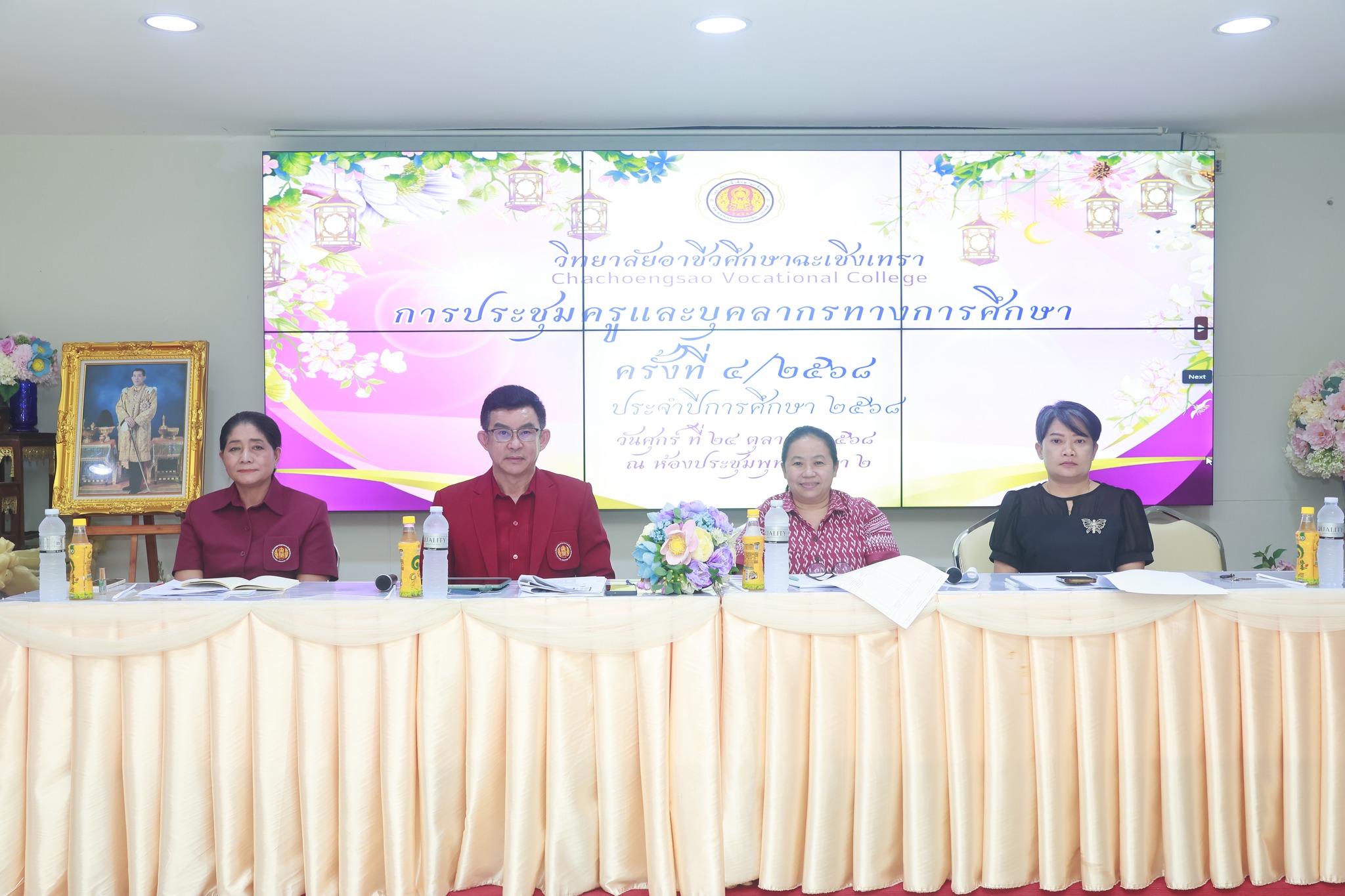 ดร.สุพจน์ ทองเหลือง ผู้อำนวยการวิทยาลัยอาชีวศึกษาฉะเชิงเทรา พร้อมด้วยคณะผู้บริหาร คณะครู และบุคลากรทางการศึกษา จัดประชุมครูและบุคลากรทางการศึกษา วิทยาลัยอาชีวศึกษาฉะเชิงเทรา ครั้งที่ ๔/๒๕๖๘ ในวันที่ ๒๔ ตุลาคม ๒๕๖๘ ณ ห้องพุทธรักษา ๒ วิทยาลัยอาชีวศึกษาฉะเชิงเทรา