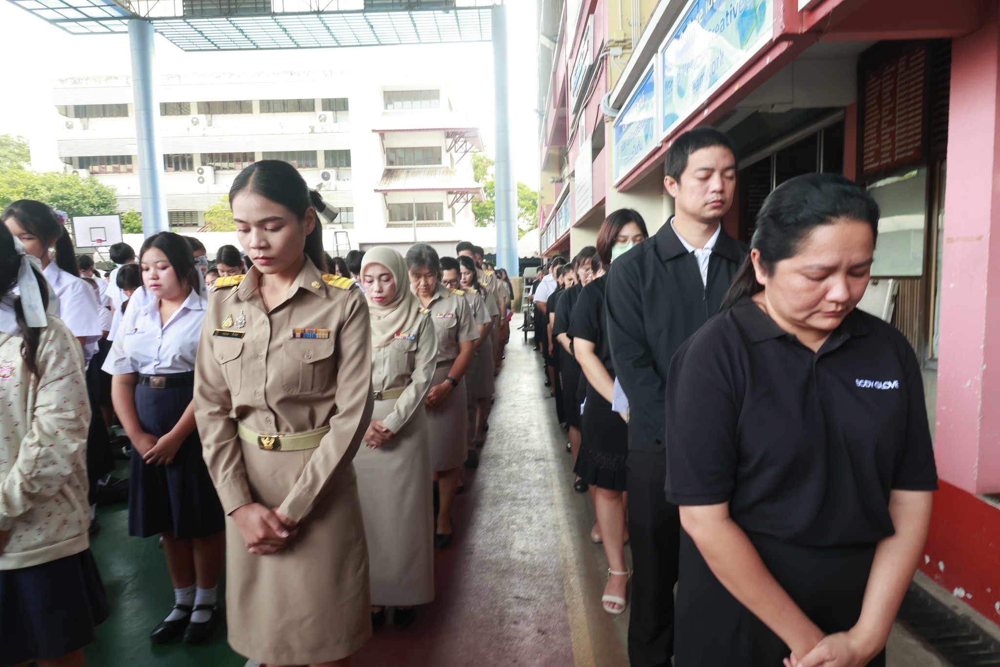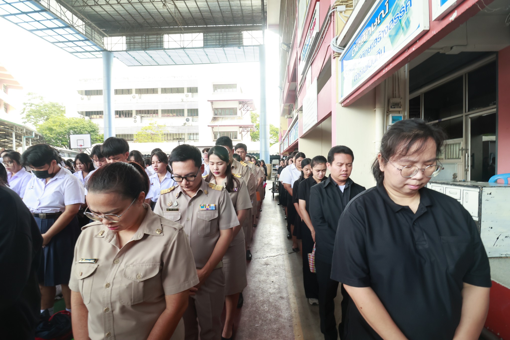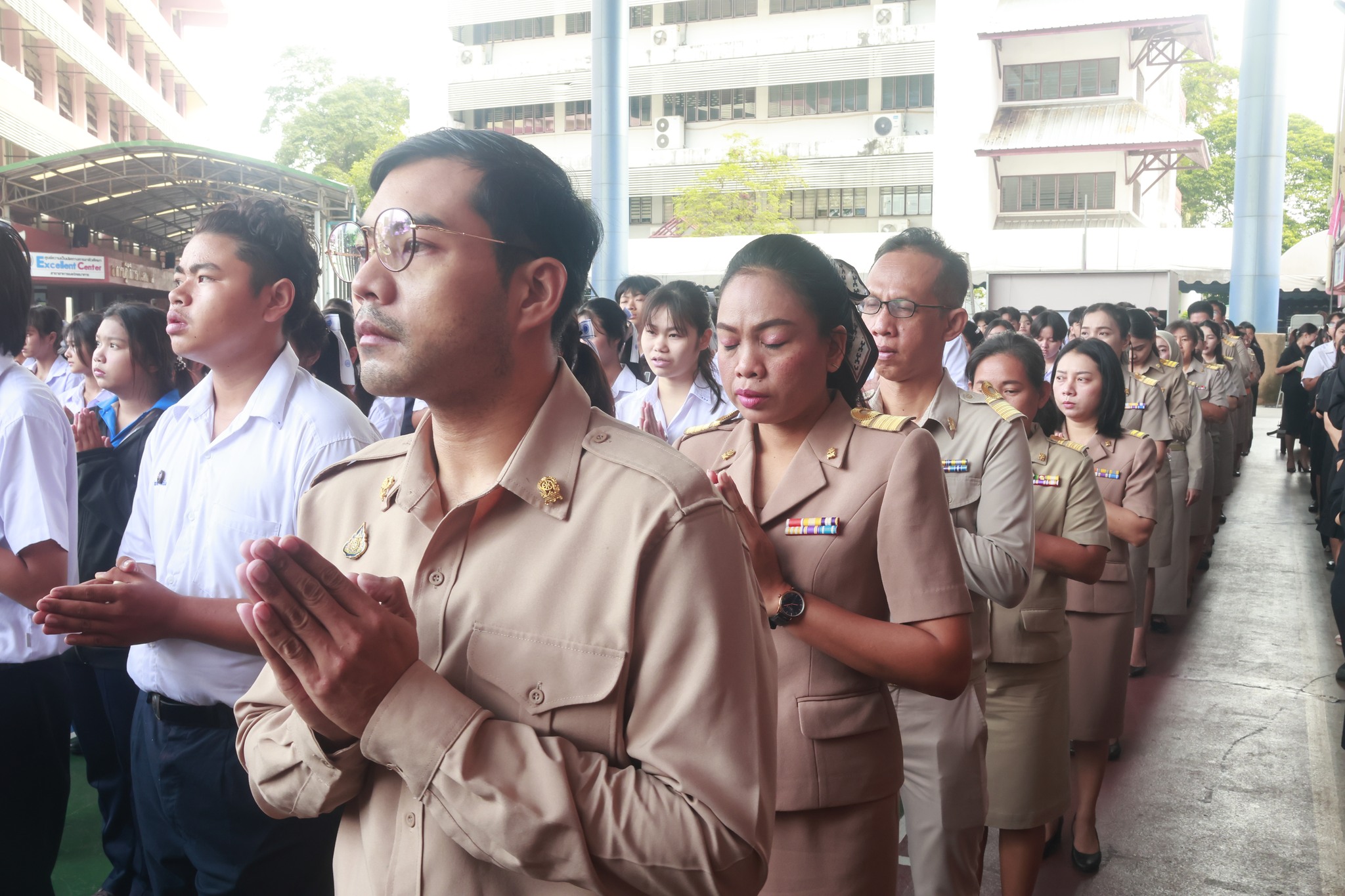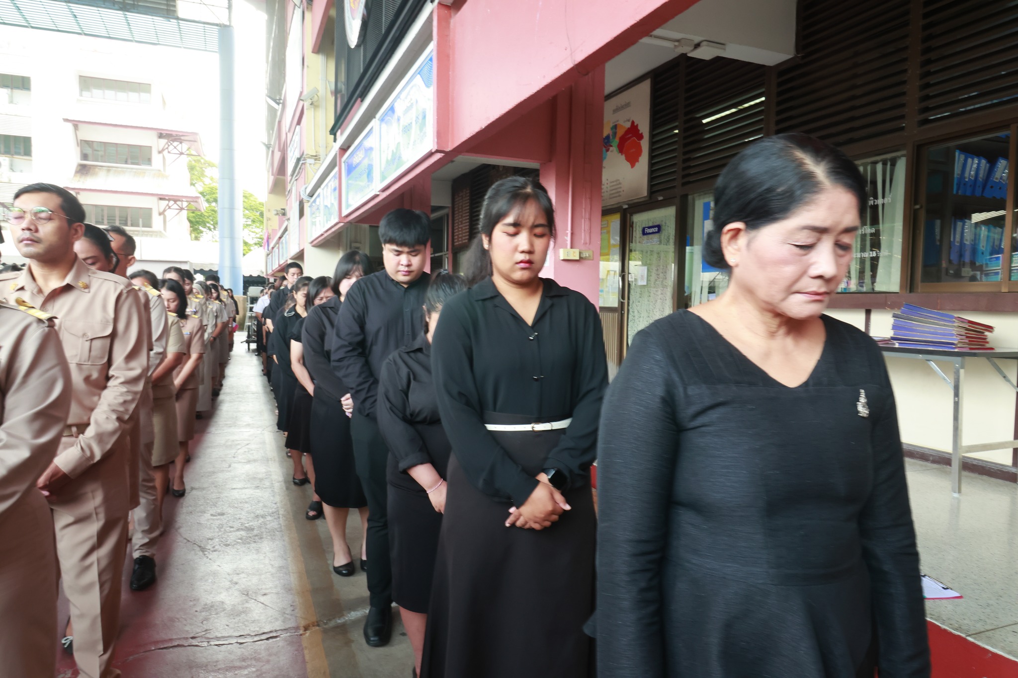 ดร.สุพจน์ ทองเหลือง ผู้อำนวยการ (วิทยฐานะเชี่ยวชาญ) วิทยาลัยอาชีวศึกษาฉะเชิงเทรา พร้อมด้วยคณะผู้บริหาร ครู บุคลากรทางการศึกษาและนักเรียน นักศึกษา ร่วมกันสวดมนต์และยืนสงบนิ่งไว้อาลัย ๑ นาที เพื่อถวายความอาลัยแด่สมเด็จพระนางเจ้าสิริกิติ์ พระบรมราชินีนาถ พระบรมราชชนนีพันปีหลวง ในวันที่ ๒๗ ตุลาคม ๒๕๖๘ ณ วิทยาลัยอาชีวศึกษาฉะเชิงเทรา
