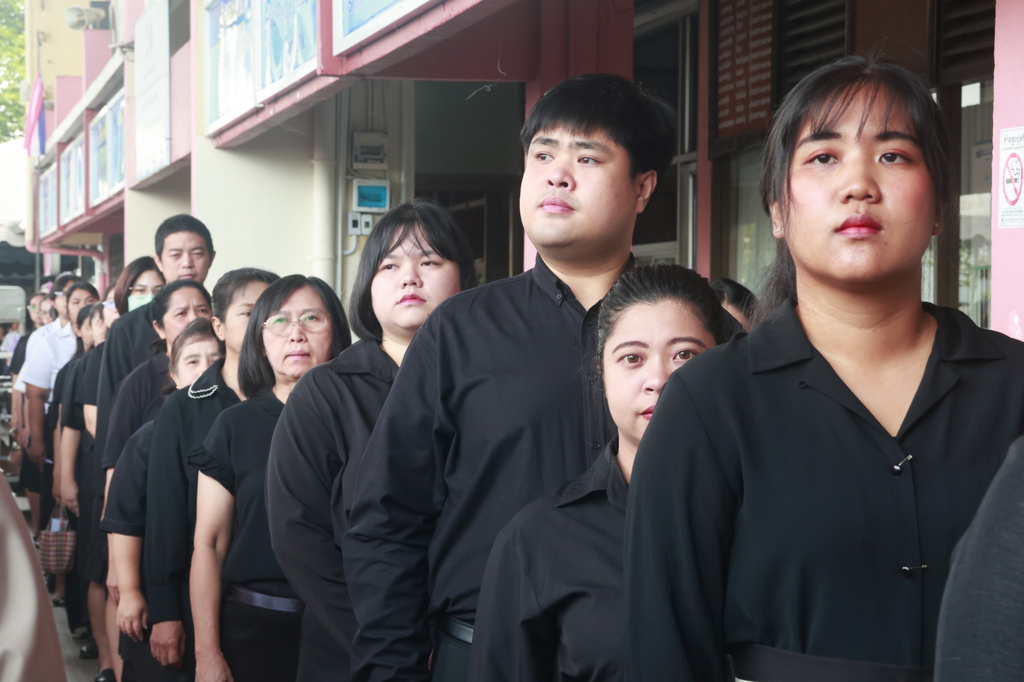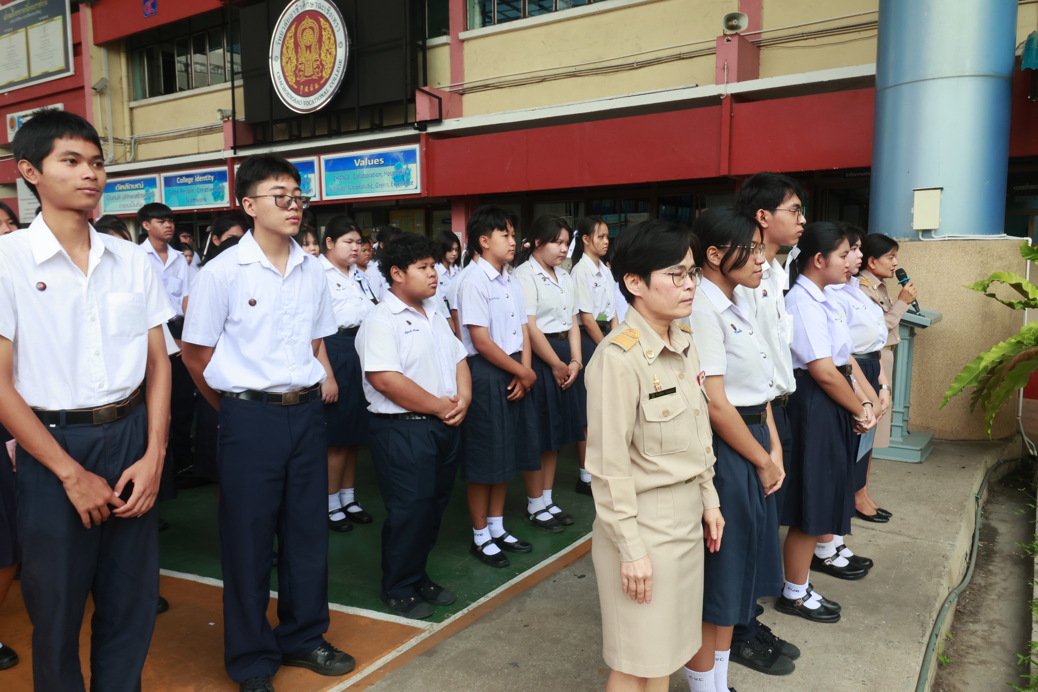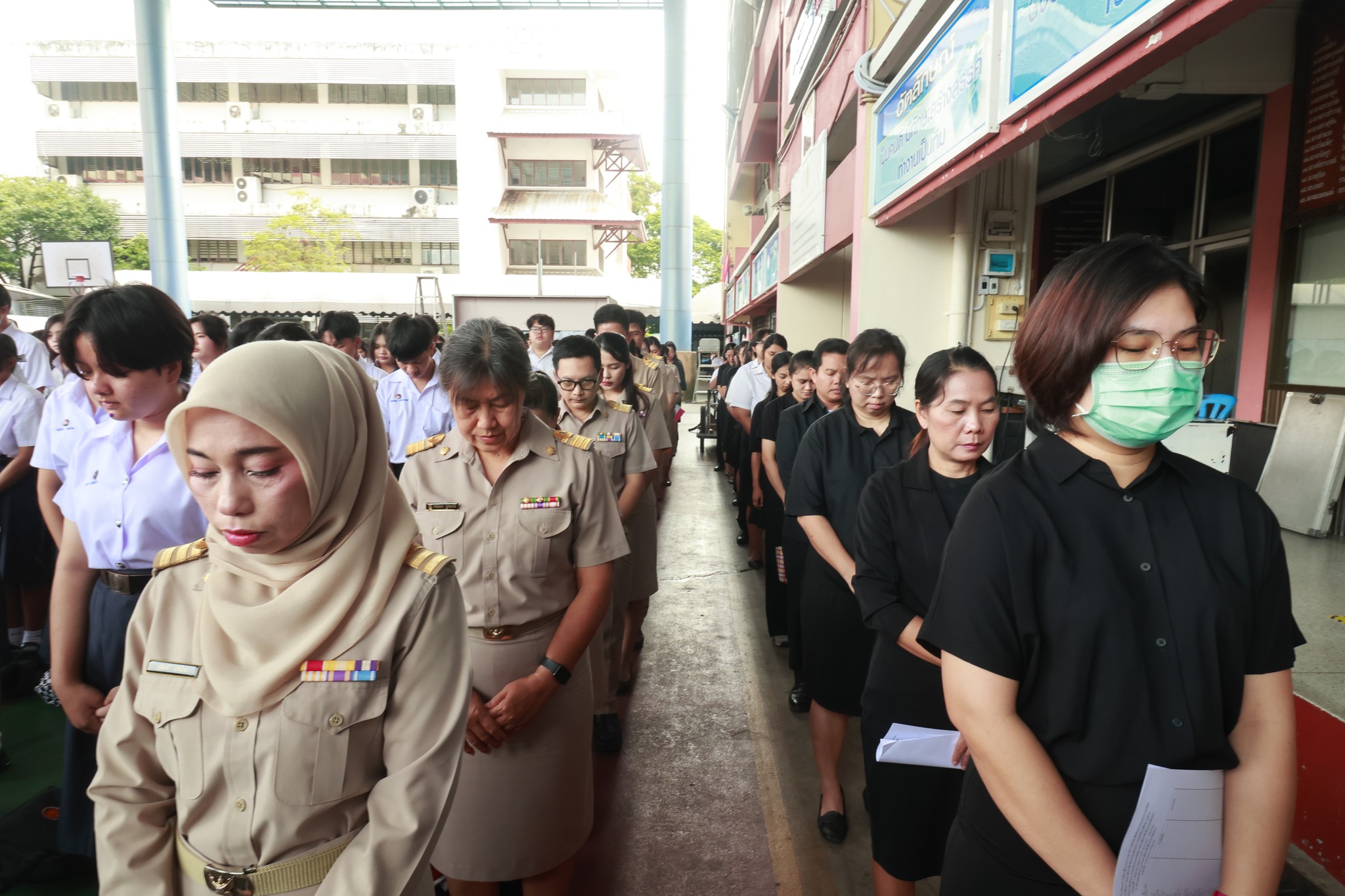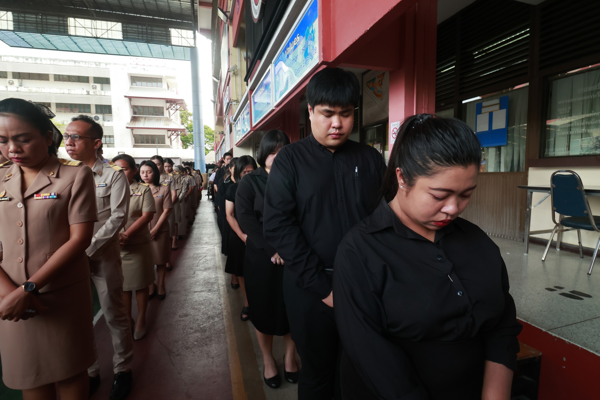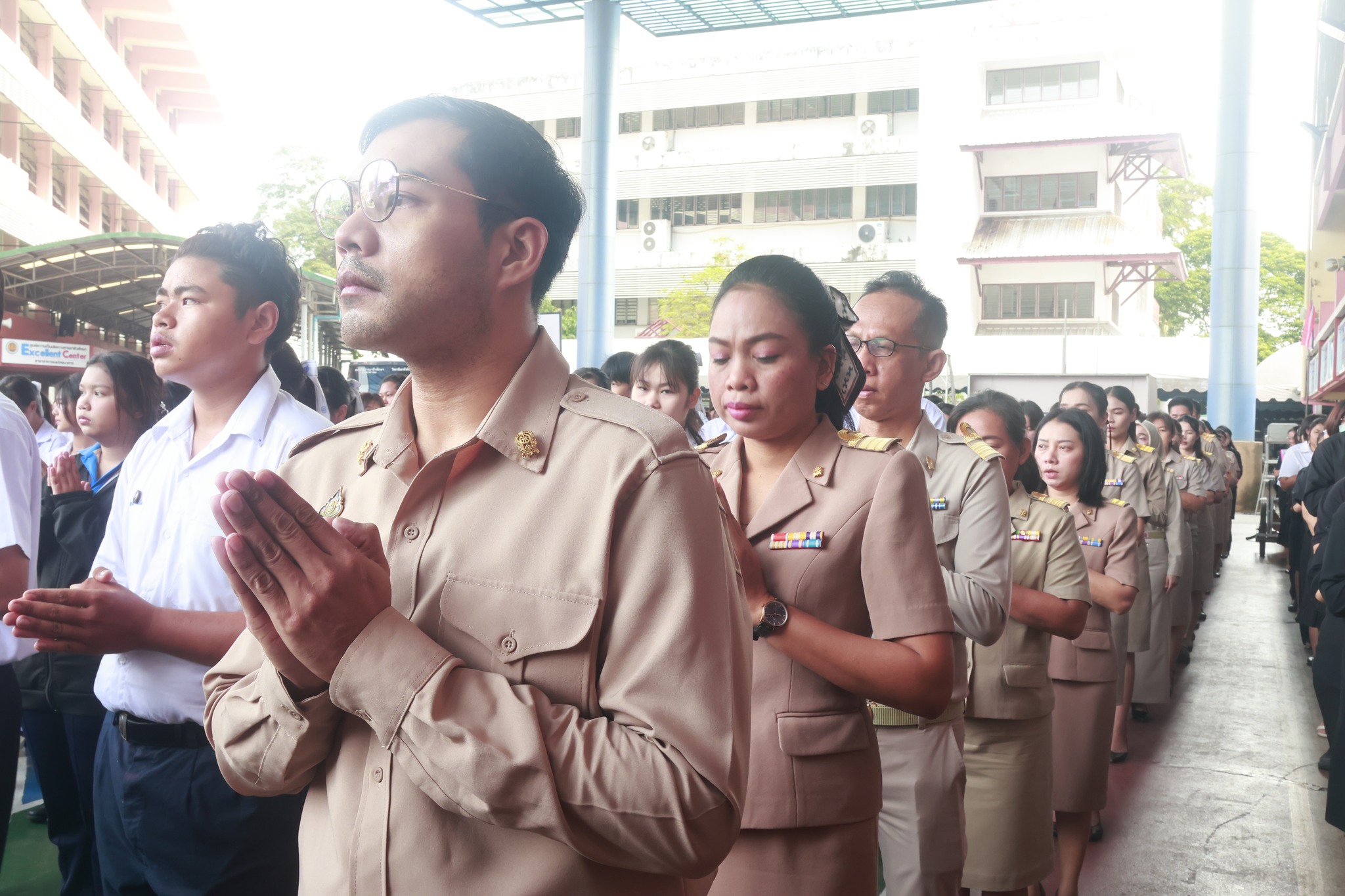 ดร.สุพจน์ ทองเหลือง ผู้อำนวยการ (วิทยฐานะเชี่ยวชาญ) วิทยาลัยอาชีวศึกษาฉะเชิงเทรา พร้อมด้วยคณะผู้บริหาร ครู บุคลากรทางการศึกษาและนักเรียน นักศึกษา ร่วมกันสวดมนต์และยืนสงบนิ่งไว้อาลัย ๑ นาที เพื่อถวายความอาลัยแด่สมเด็จพระนางเจ้าสิริกิติ์ พระบรมราชินีนาถ พระบรมราชชนนีพันปีหลวง ในวันที่ ๒๗ ตุลาคม ๒๕๖๘ ณ วิทยาลัยอาชีวศึกษาฉะเชิงเทรา