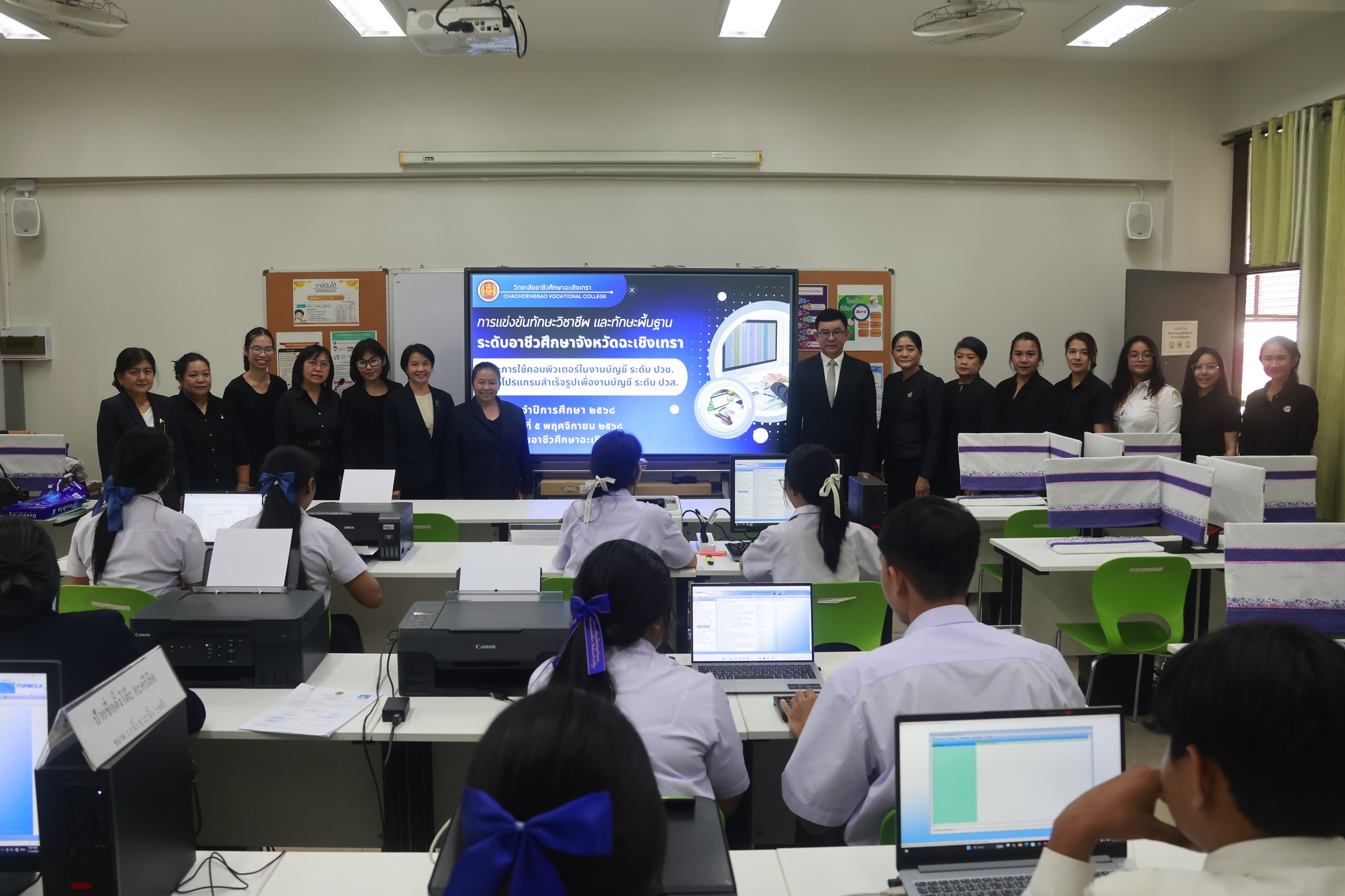 ผู้อำนวยการ (วิทยฐานะเชี่ยวชาญ) วิทยาลัยอาชีวศึกษาฉะเชิงเทรา พร้อมด้วยคณะผู้บริหาร ครู บุคลากรทางการศึกษา และนักเรียน นักศึกษา
