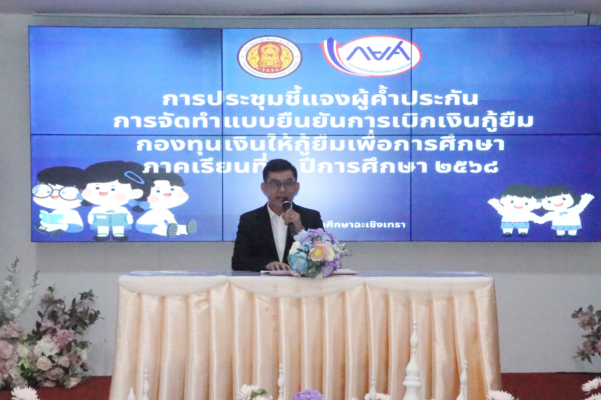 ดร.สุพจน์ ทองเหลือง ผู้อำนวยการ (วิทยฐานะเชี่ยวชาญ) วิทยาลัยอาชีวศึกษาฉะเชิงเทรา พร้อมด้วยคณะผู้บริหาร ครู และบุคลากรทางการศึกษา ได้จัดการประชุมชี้แจงผู้ค้ำประกัน และจัดทำแบบยืนยันการเบิกเงินกู้ยืมกองทุนเงินให้กู้ยืมเพื่อการศึกษา ภาคเรียนที่ ๒ ปีการศึกษา ๒๕๖๘