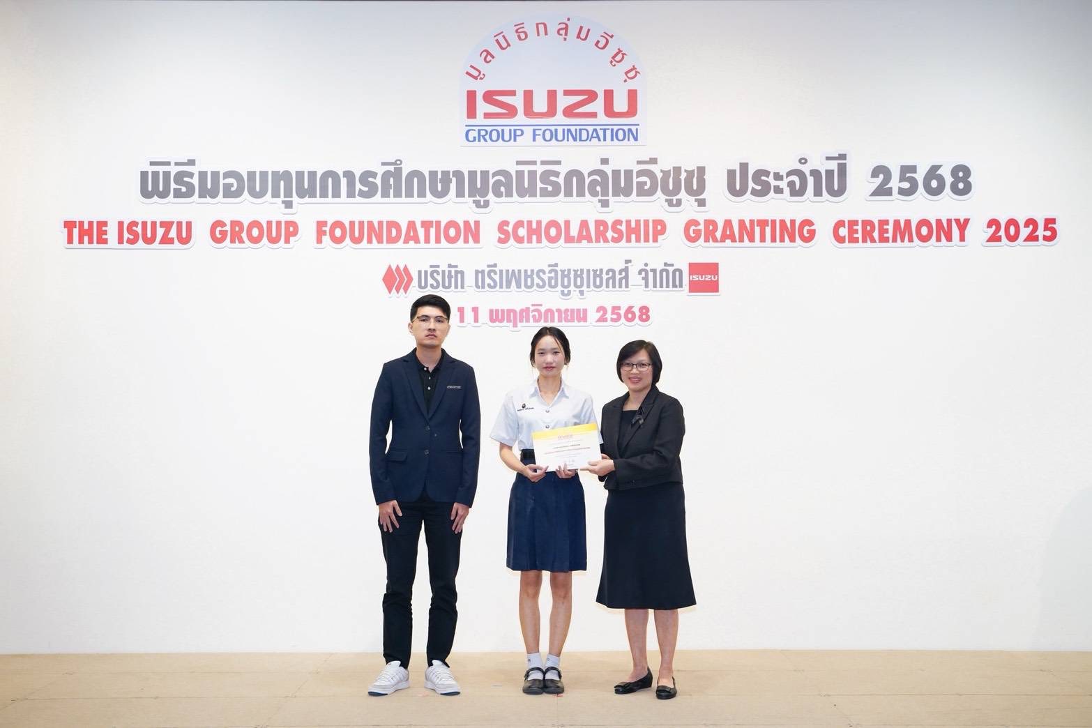 ดร.สุพจน์ ทองเหลือง ผู้อำนวยการ (วิทยฐานะเชี่ยวชาญ) วิทยาลัยอาชีวศึกษาฉะเชิงเทรา มอบหมายให้งานแนะแนวฯ นำนักเรียนเข้าร่วมพิธีมอบทุนการศึกษา จากมูลนิธิกลุ่มอีซูซุ ประจำปีการศึกษา 2568 ณ บริษัทตรีเพชรอีซูซุ จำกัด เมื่อวันที่ 11 พฤศจิกายน 2568