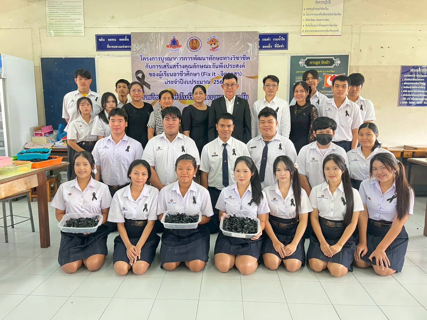 (fix it - จิตอาสา) ประจำปีงบประมาณ 2569 ในรายวิชาการทำโบว์ริบบิ้นถวายความอาลัย แจกจ่ายให้กับนักเรียนนักศึกษาและบุคลากรของวิทยาลัยอาชีวศึกษาฉะเชิงเทรา เพื่อแสดงความสำนึกในพระมหากรุณาธิคุณ และถวายความอาลัยแด่ สมเด็จพระนางเจ้าสิริกิติ์ พระบรมราชินีนาถ พระบรมราชชนนีพันปีหลวง