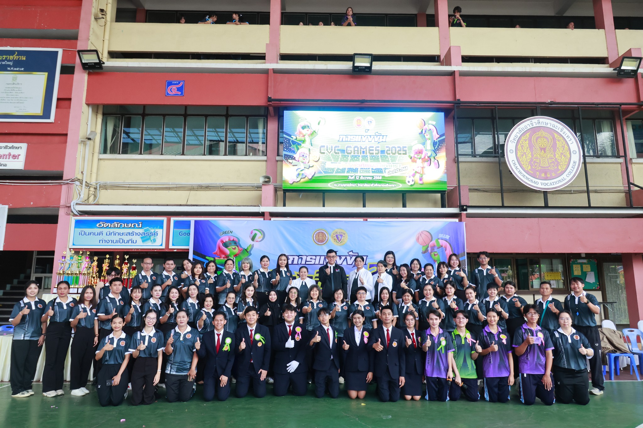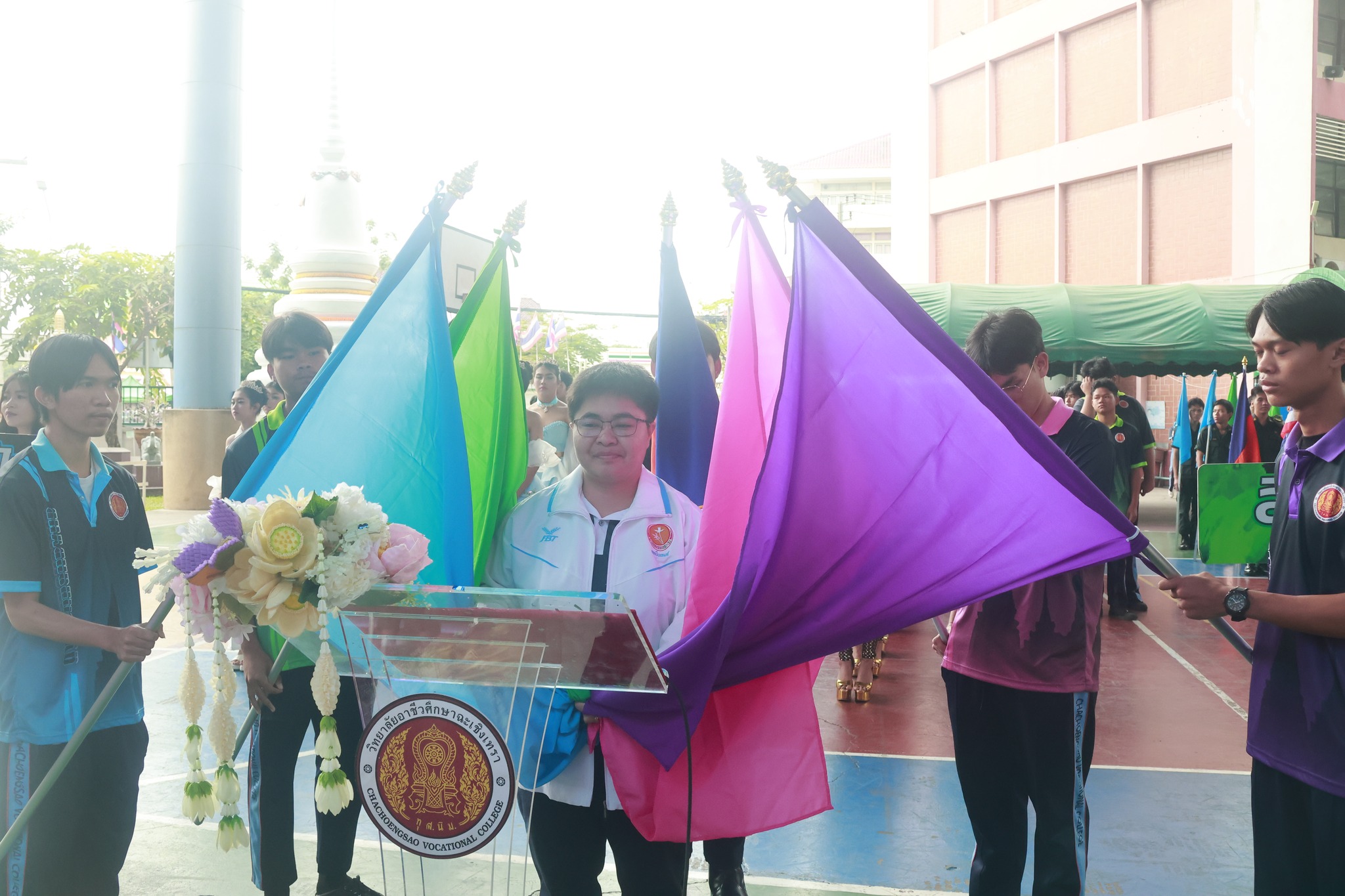ดร.สุพจน์ ทองเหลือง ผู้อำนวยการ (วิทยฐานะเชี่ยวชาญ) วิทยาลัยอาชีวศึกษาฉะเชิงเทรา เป็นประธานในพิธีเปิดงาน กีฬาสีภายใน ประจำปีการศึกษา ๒๕๖๘ “CVC Game”