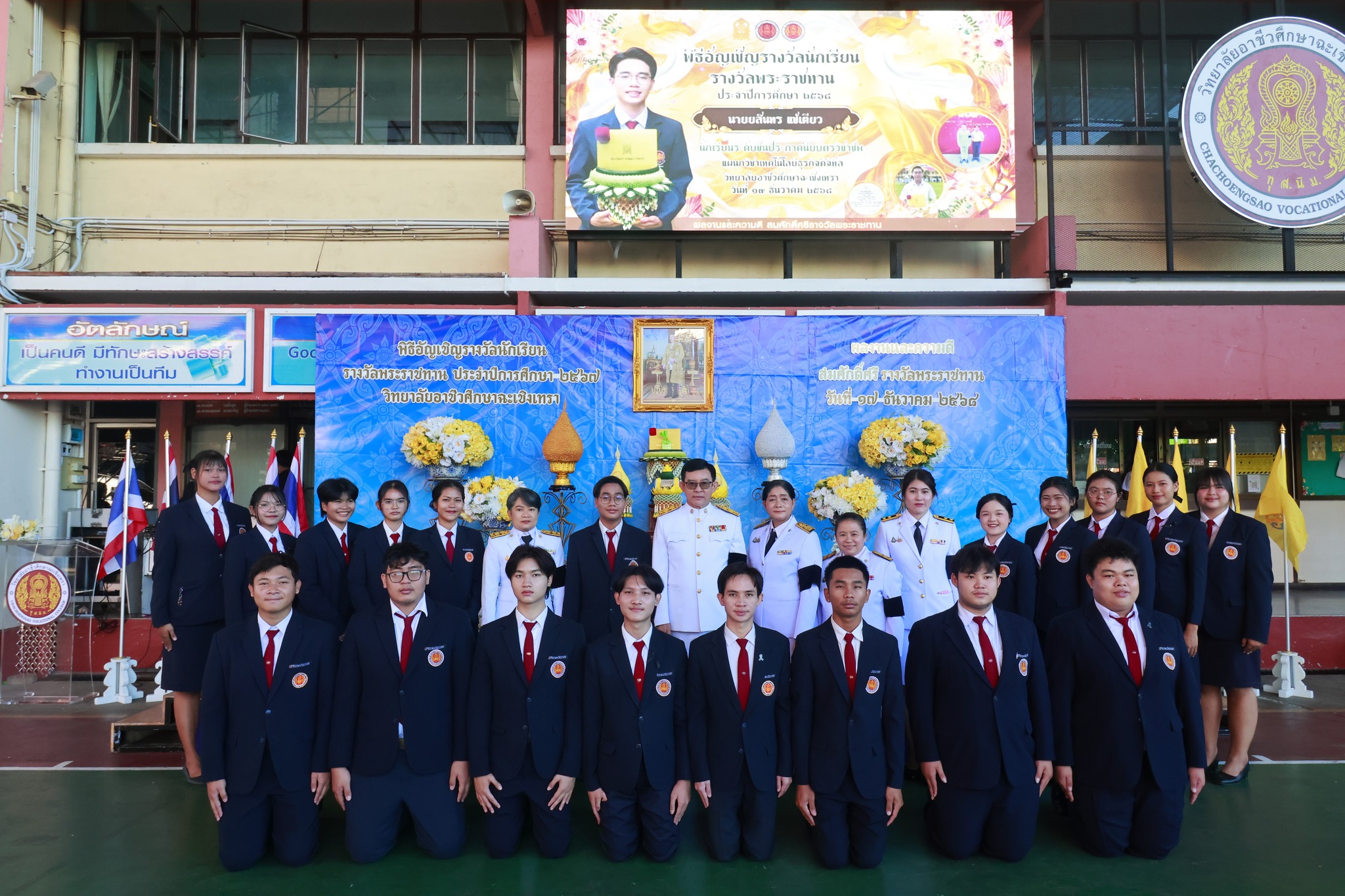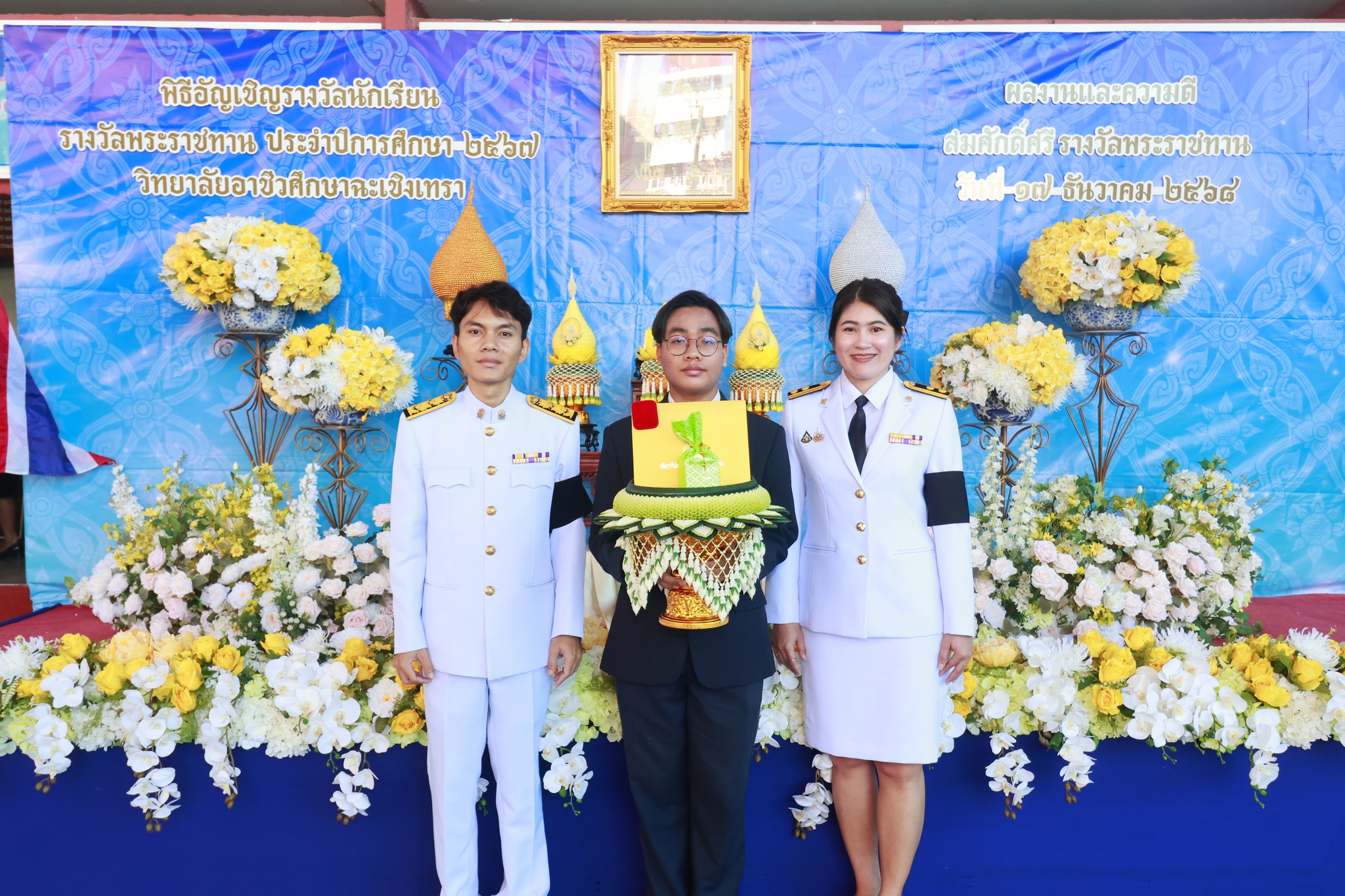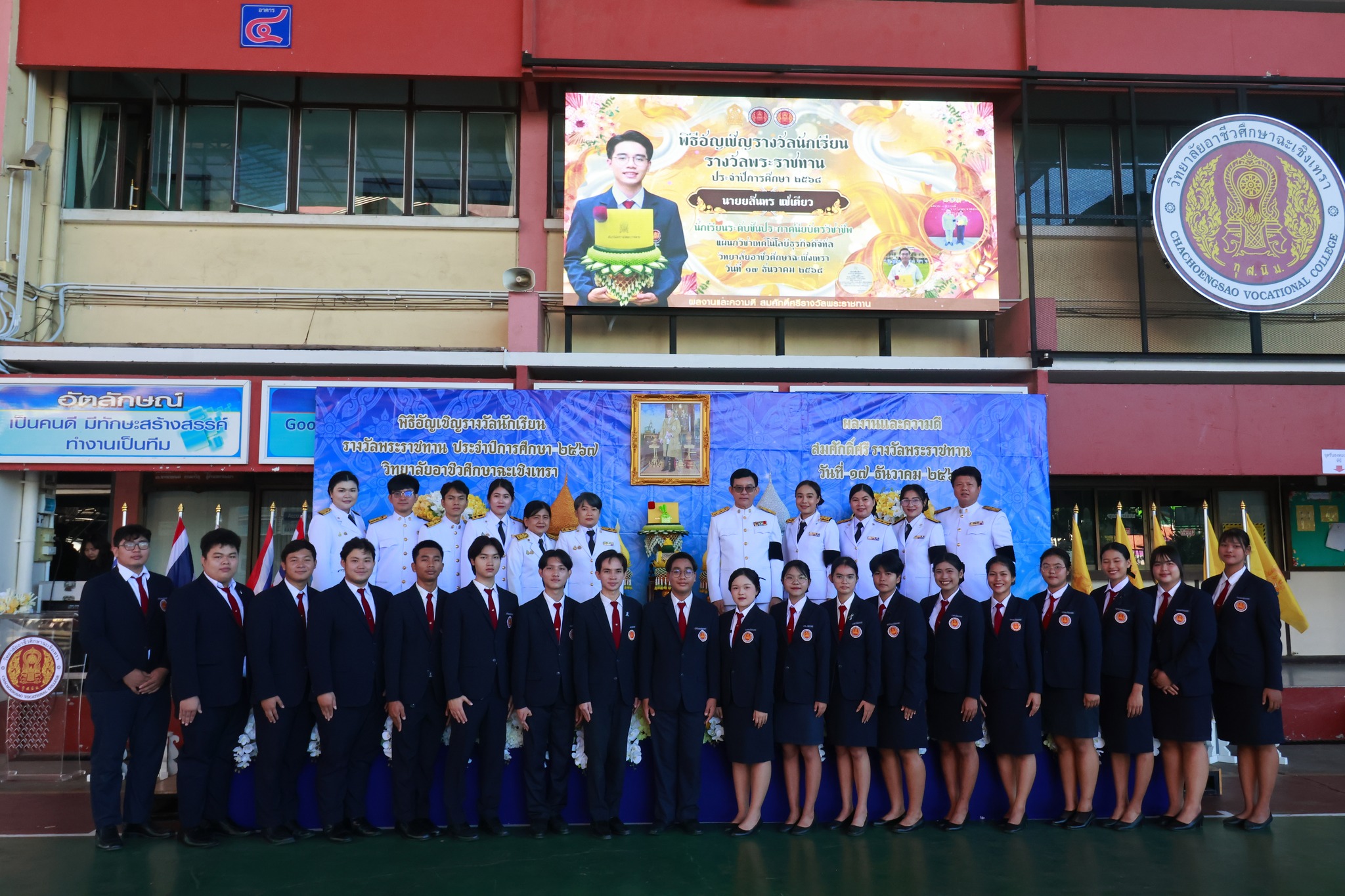 วิทยาลัยอาชีวศึกษาฉะเชิงเทรา ได้จัดพิธีอัญเชิญรางวัลนักเรียนพระราชทาน ประจำปีการศึกษา ๒๕๖๗ ณ บริเวณลานพุทธรักษา นำโดย ดร.สุพจน์ ทองเหลือง ผู้อำนวยการ (วิทยฐานะเชี่ยวชาญ) วิทยาลัยอาชีวศึกษาฉะเชิงเทรา พร้อมด้วยคณะผู้บริหาร คณะครู บุคลากรทางการศึกษา และนักเรียน นักศึกษา เข้าร่วมพิธีอย่างพร้อมเพรียง เพื่อแสดงความจงรักภักดีและร่วมแสดงความยินดีกับ นายยสินทร แซ่เตียว นักเรียนผู้ได้รับรางวัลอันทรงเกียรติ