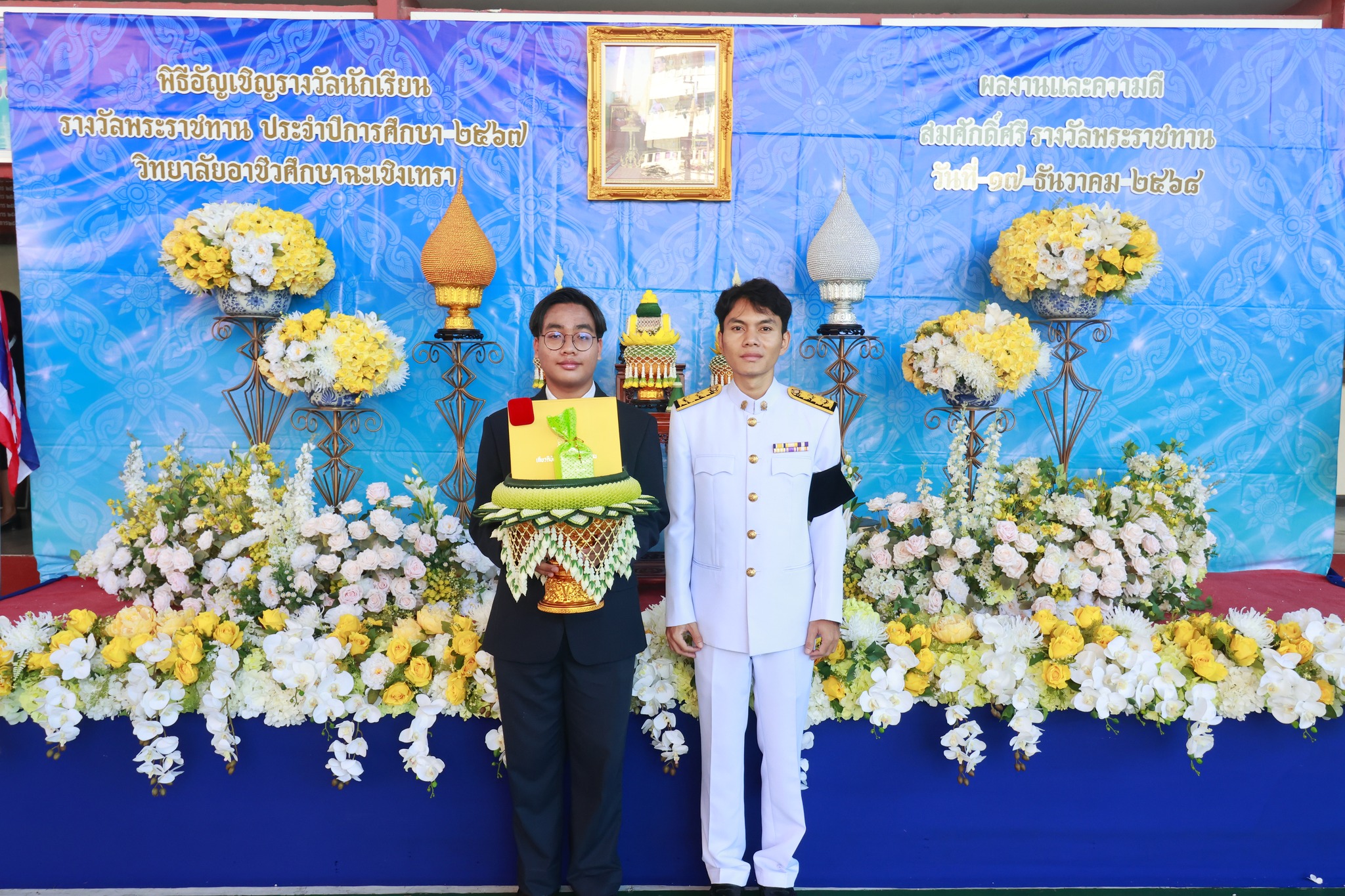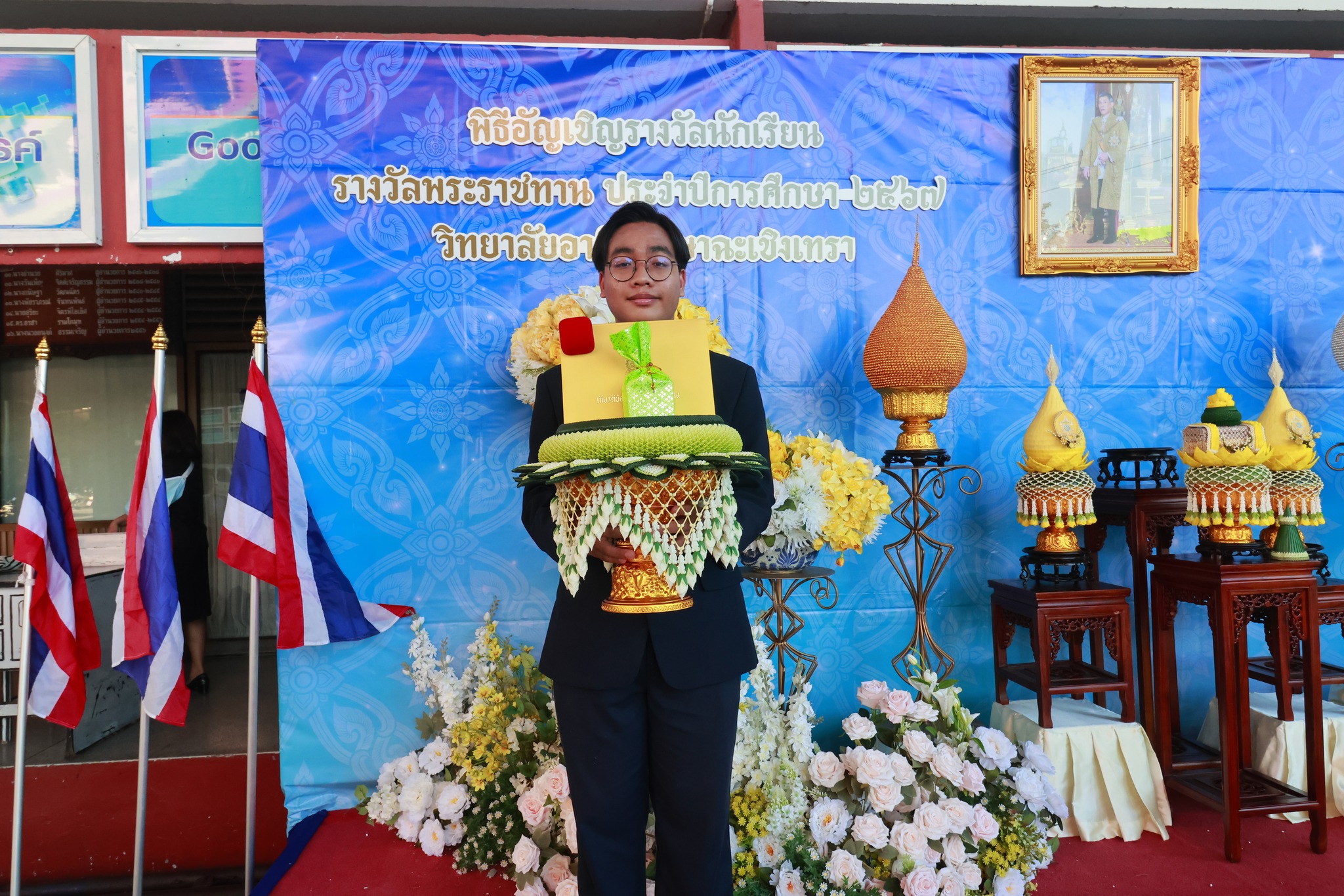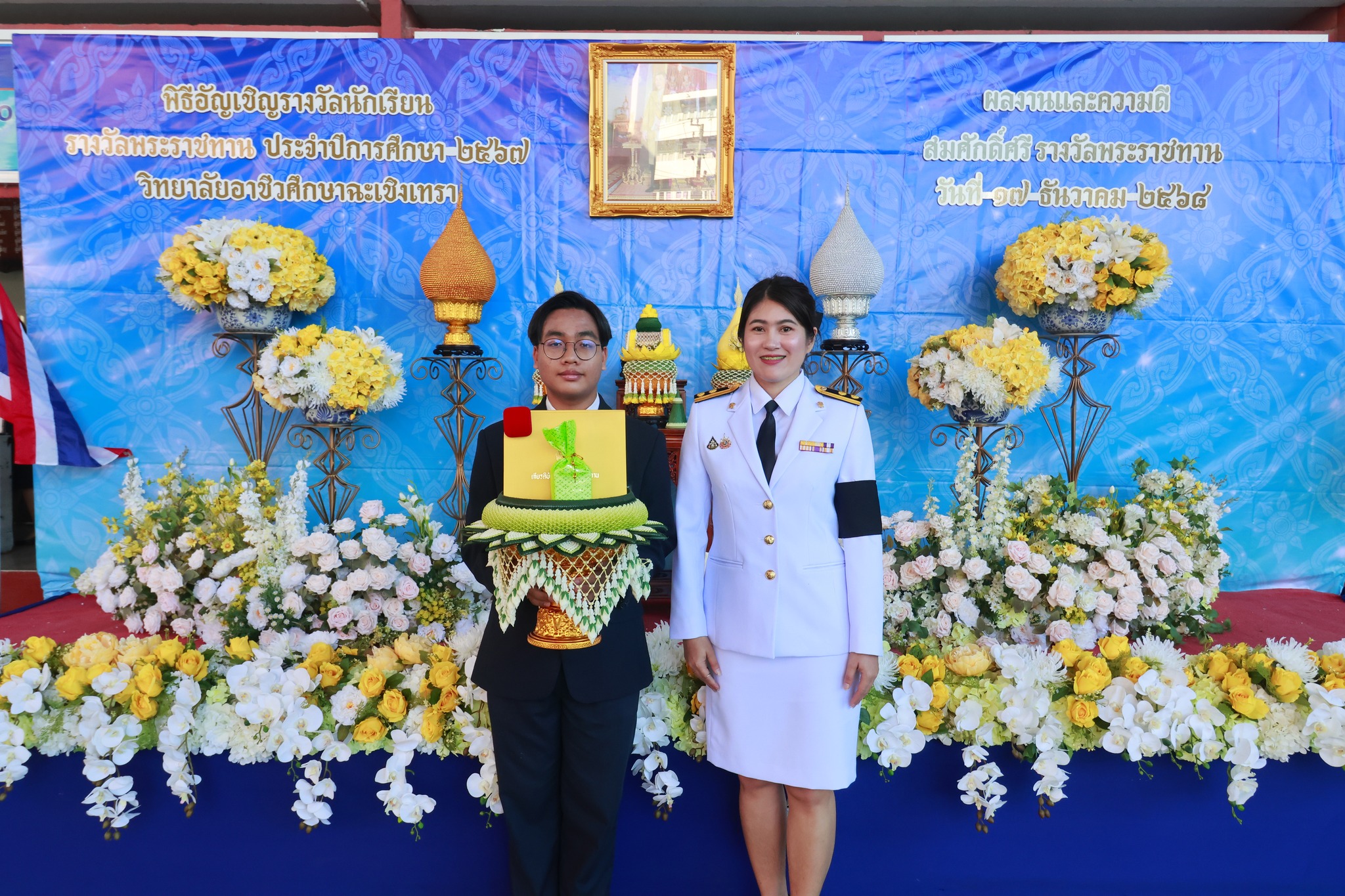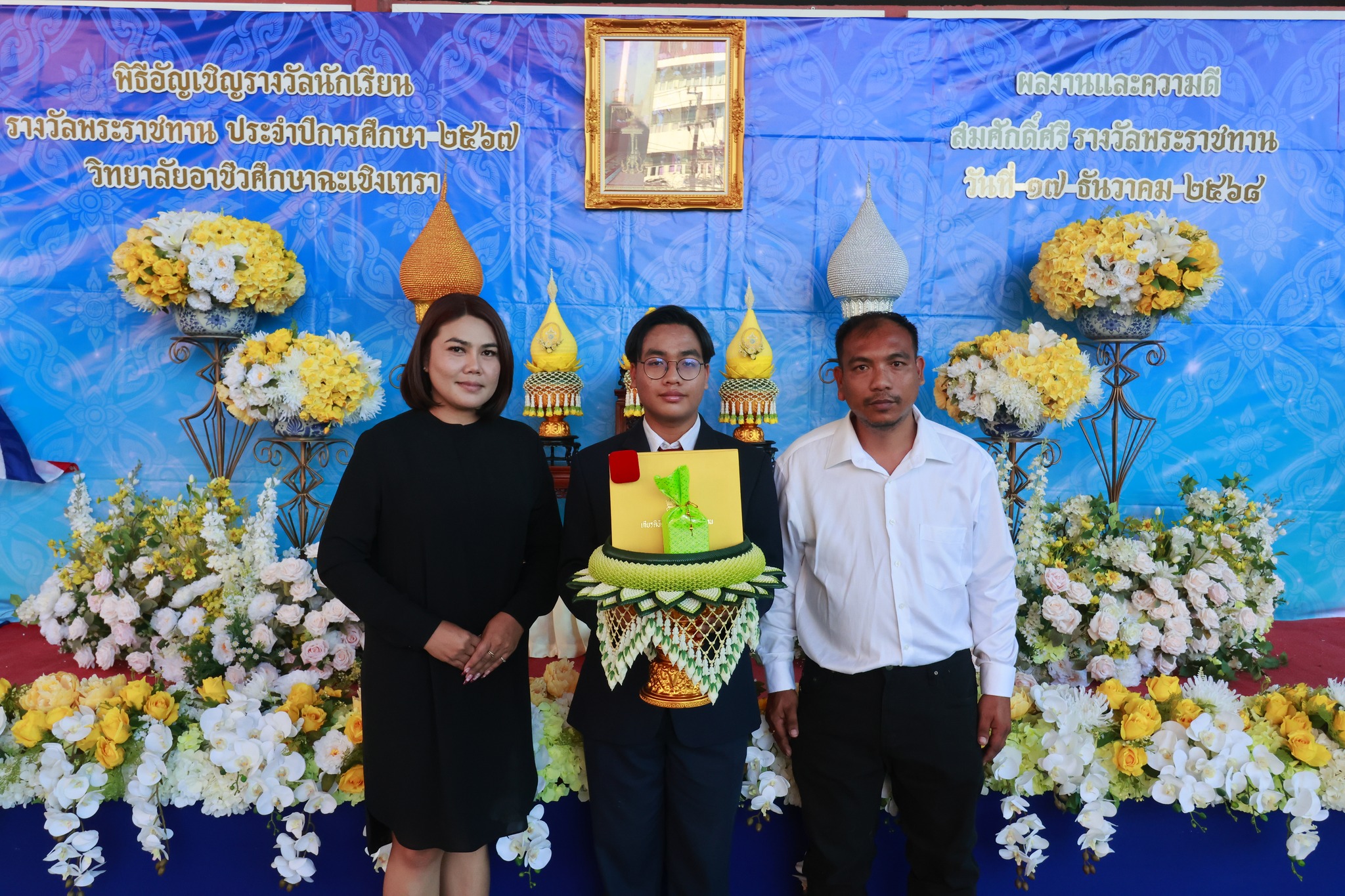 วิทยาลัยอาชีวศึกษาฉะเชิงเทรา ได้จัดพิธีอัญเชิญรางวัลนักเรียนพระราชทาน ประจำปีการศึกษา ๒๕๖๗ ณ บริเวณลานพุทธรักษา นำโดย ดร.สุพจน์ ทองเหลือง ผู้อำนวยการ (วิทยฐานะเชี่ยวชาญ) วิทยาลัยอาชีวศึกษาฉะเชิงเทรา พร้อมด้วยคณะผู้บริหาร คณะครู บุคลากรทางการศึกษา และนักเรียน นักศึกษา เข้าร่วมพิธีอย่างพร้อมเพรียง เพื่อแสดงความจงรักภักดีและร่วมแสดงความยินดีกับ นายยสินทร แซ่เตียว นักเรียนผู้ได้รับรางวัลอันทรงเกียรติ