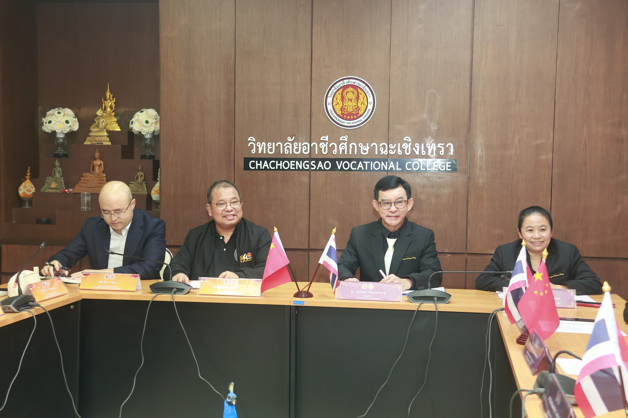 จากนั้นร่วมรับชมวิดีทัศน์แนะนำวิทยาลัยอาชีวศึกษาฉะเชิงเทรา เพื่อสะท้อนบทบาท ภารกิจ และศักยภาพด้านการจัดการอาชีวศึกษา