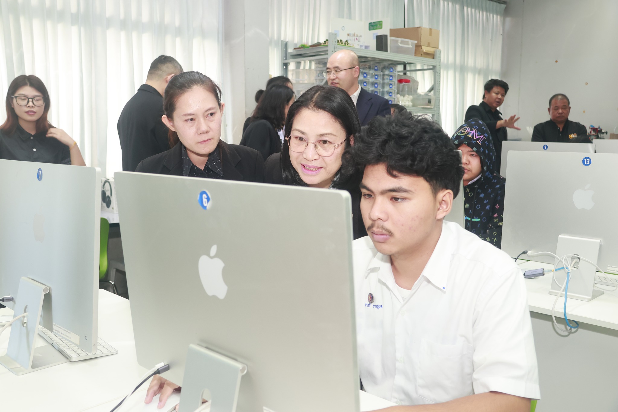 โอกาสนี้ ดร.สุพจน์ ทองเหลือง ผู้อำนวยการวิทยาลัยอาชีวศึกษาฉะเชิงเทรา นำเข้าเยี่ยมชมห้องปฏิบัติการ “วิทยาลัยช่างอีคอมเมิร์ซข้ามพรมแดนสมัยใหม่ ไทย–จีน” และห้องปฏิบัติการคอมพิวเตอร์ เพื่อแลกเปลี่ยนเรียนรู้ด้านการจัดการเรียนการสอนเชิงปฏิบัติ พร้อมเน้นย้ำถึงความสำคัญของความร่วมมือไทย–จีน ในการพัฒนาหลักสูตร การจัดการเรียนการสอน และการพัฒนาศักยภาพครูและบุคลากรทางการศึกษาให้สอดคล้องกับความต้องการของตลาดแรงงานในระดับสากล