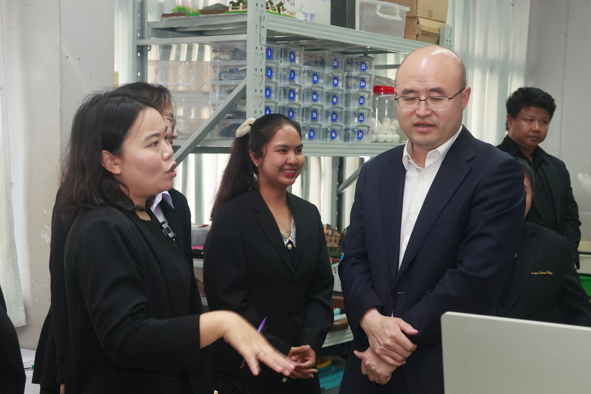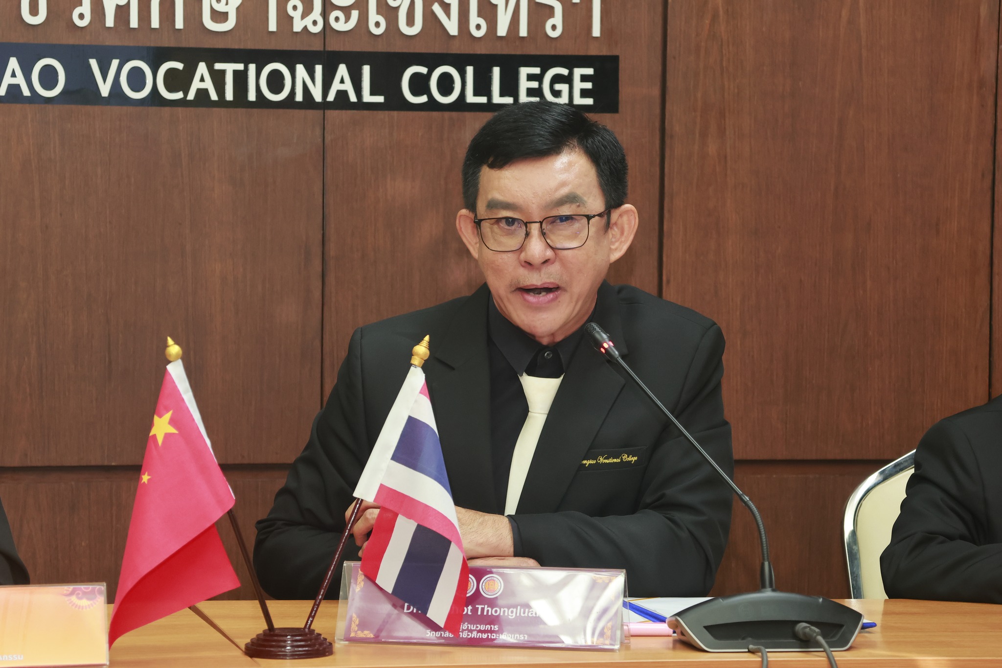 โอกาสนี้ ดร.สุพจน์ ทองเหลือง ผู้อำนวยการวิทยาลัยอาชีวศึกษาฉะเชิงเทรา นำเข้าเยี่ยมชมห้องปฏิบัติการ “วิทยาลัยช่างอีคอมเมิร์ซข้ามพรมแดนสมัยใหม่ ไทย–จีน” และห้องปฏิบัติการคอมพิวเตอร์ เพื่อแลกเปลี่ยนเรียนรู้ด้านการจัดการเรียนการสอนเชิงปฏิบัติ พร้อมเน้นย้ำถึงความสำคัญของความร่วมมือไทย–จีน ในการพัฒนาหลักสูตร การจัดการเรียนการสอน และการพัฒนาศักยภาพครูและบุคลากรทางการศึกษาให้สอดคล้องกับความต้องการของตลาดแรงงานในระดับสากล