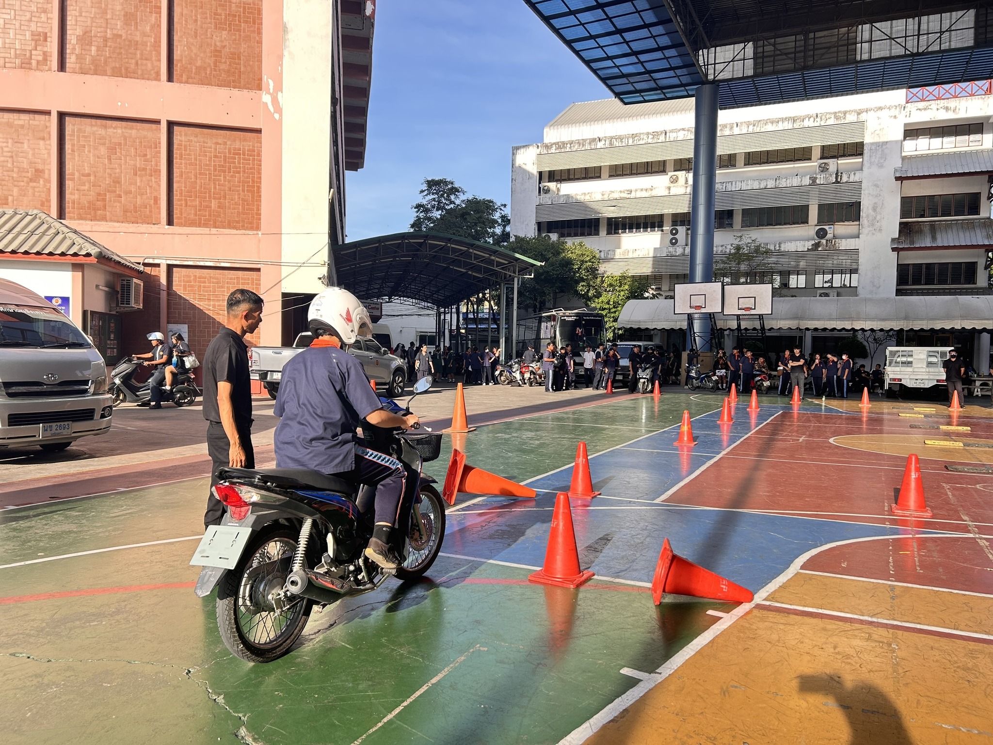 ดร.สุพจน์ ทองเหลือง ผู้อำนวยการ(วิทยฐานะเชี่ยวชาญ) วิทยาลัยอาชีวศึกษาฉะเชิงเทรา พร้อมด้วยคณะผู้บริหาร คณะครู บุคลากรทางการศึกษา นำนักเรียน นักศึกษา เข้าร่วมโครงการ “อบรมนักเรียนรุ่นใหม่มีใบขับขี่ จังหวัดฉะเชิงเทรา ประจำปีงบประมาณ ๒๕๖๙ ”
