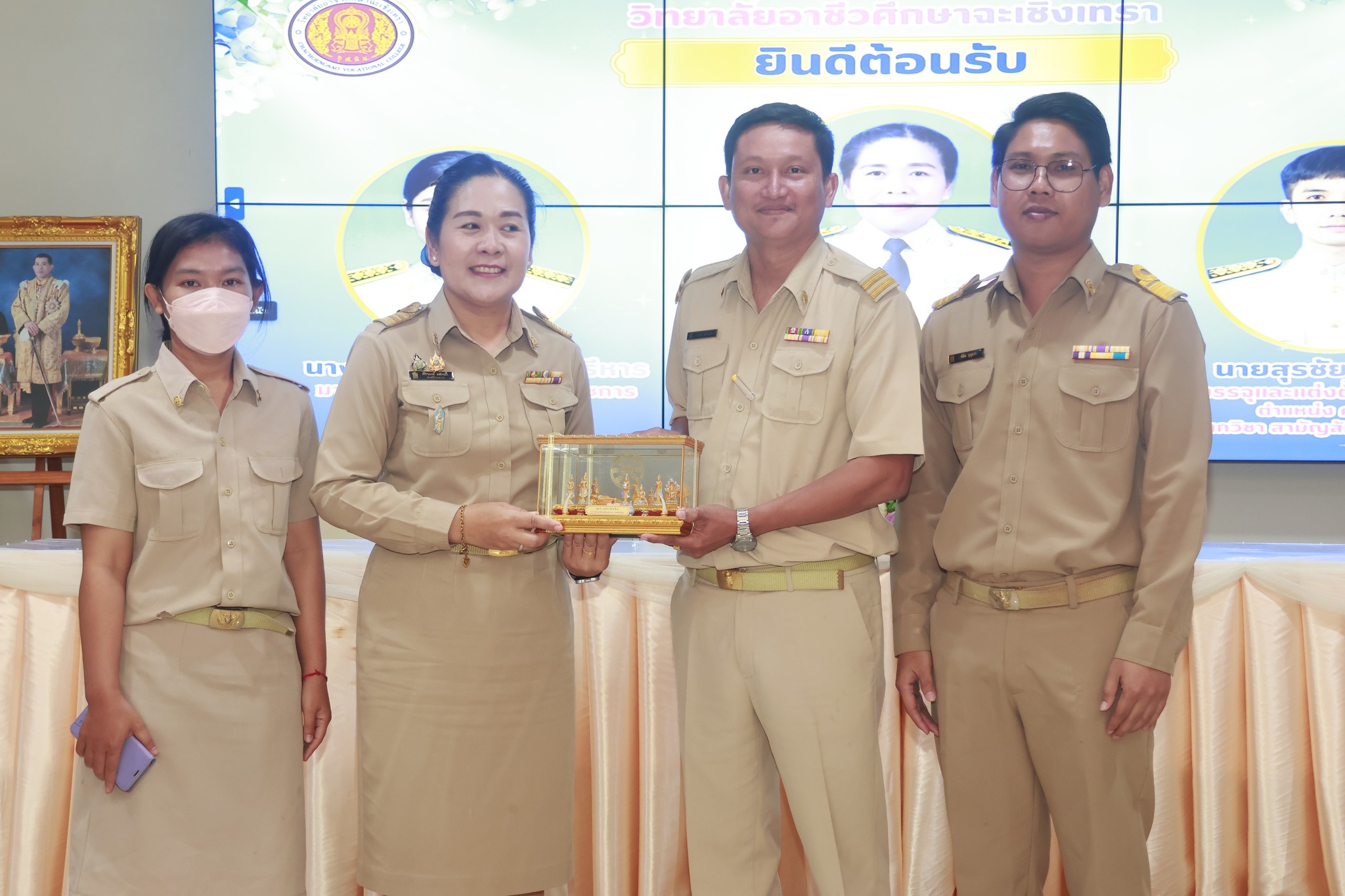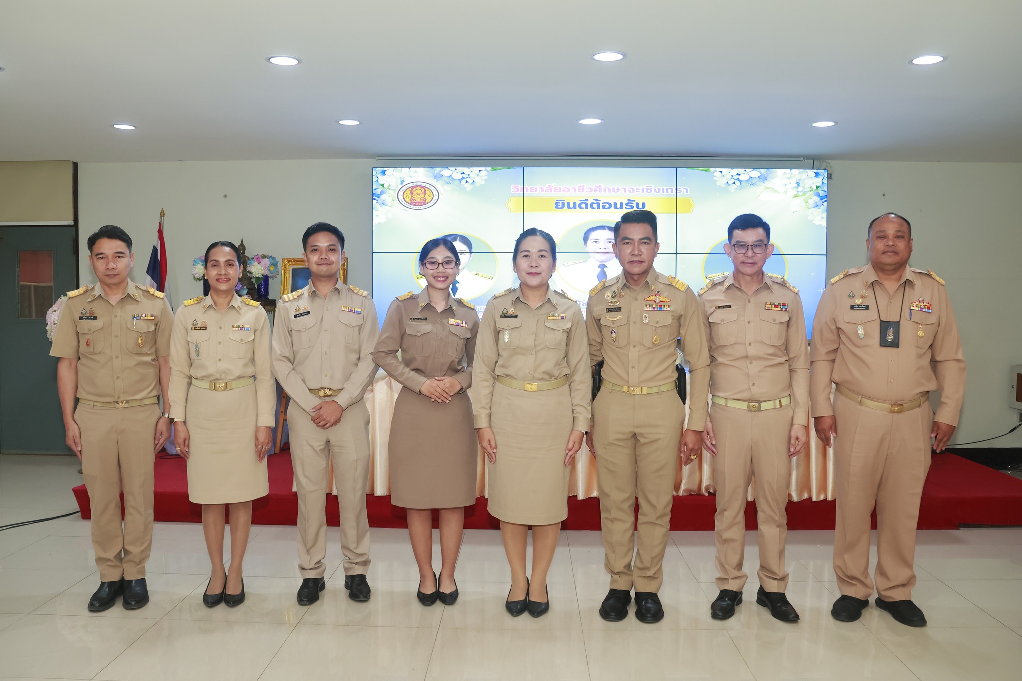 ดร.สุพจน์ ทองเหลือง ผู้อำนวยการ (วิทยฐานะเชี่ยวชาญ) วิทยาลัยอาชีวศึกษาฉะเชิงเทรา พร้อมด้วยคณะผู้บริหาร ครู บุคลากรทางการศึกษา และนักเรียน นักศึกษา ร่วมแสดงความยินดีและต้อนรับ ผู้บริหารและคณะครูดังนี้