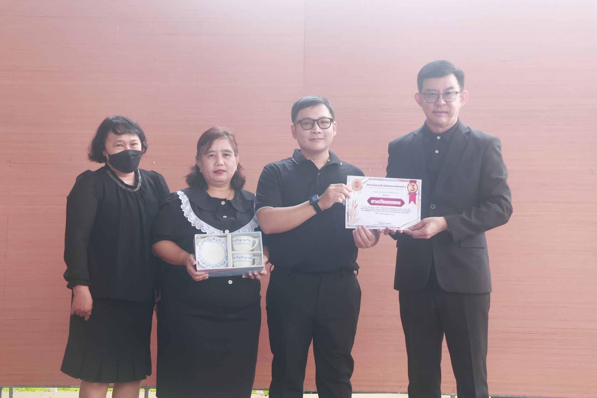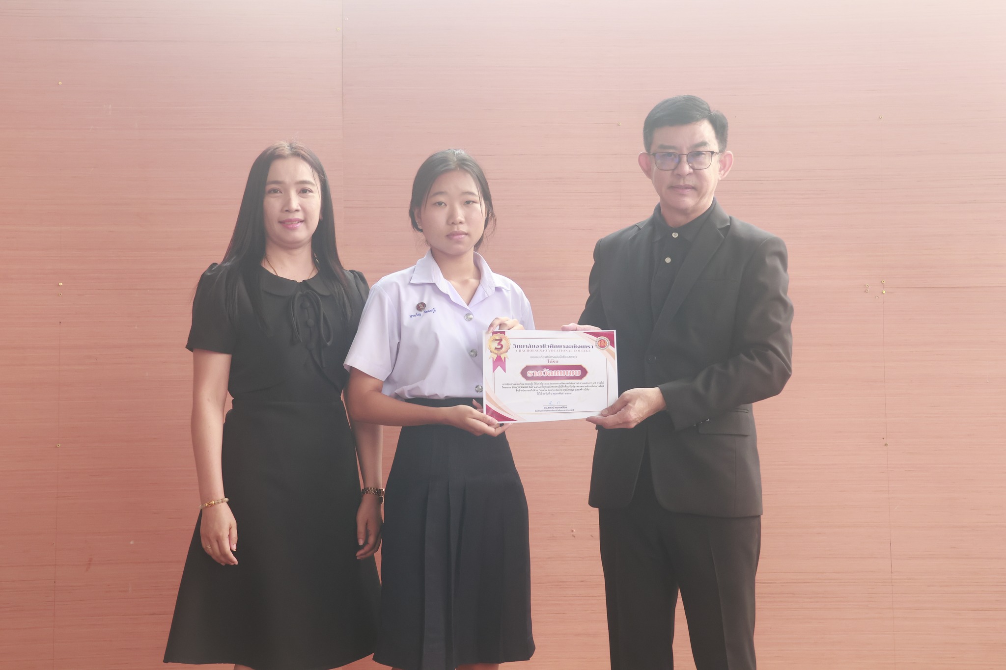 ดร.สุพน์ ทองเหลือง ผู้อำนวยการ (วิทยฐานะเชี่ยวชาญ) วิทยาลัยอาชีวศึกษาฉะเชิงเทรา มอบรางวัลในโครงการ Big Cleaning Day ประจำปีการศึกษา ๒๕๖๘ ให้กับครู บุคลากร และนักเรียน นักศึกษาที่ดูแลรับผิดชอบ ห้องสำนักงาน ห้องปฏิบัติการ ห้องเรียนทฤษฎี และอาคารสถานที่