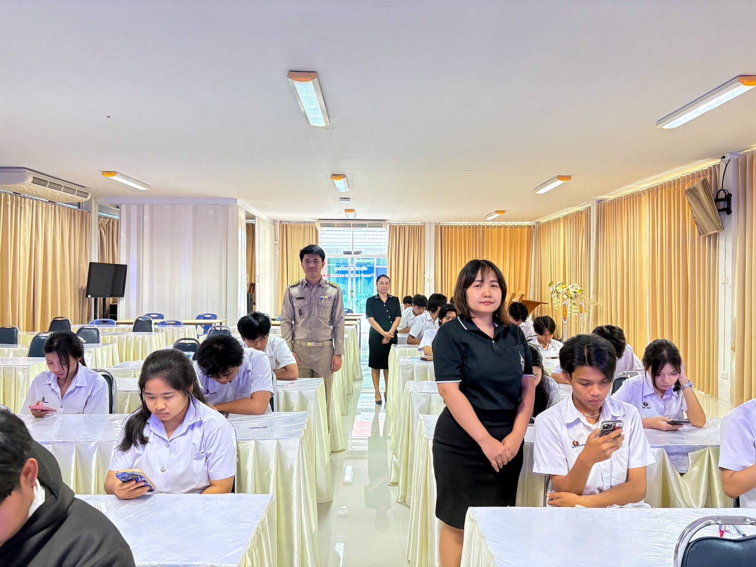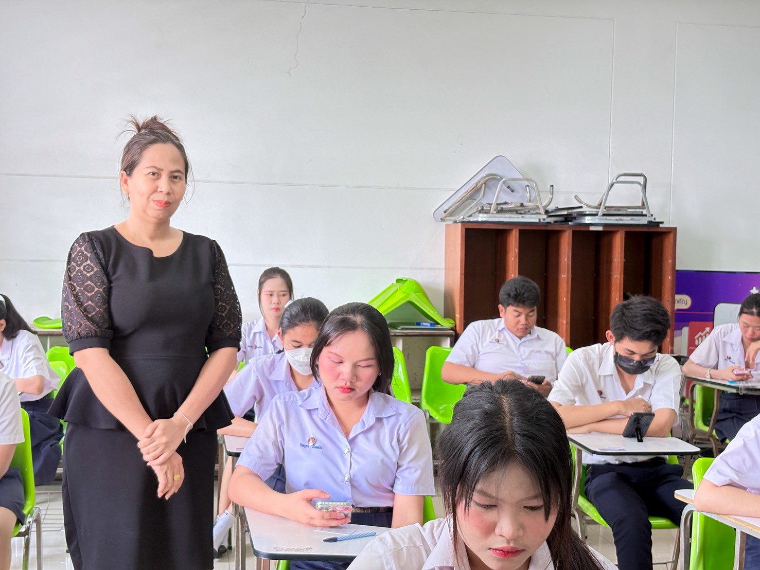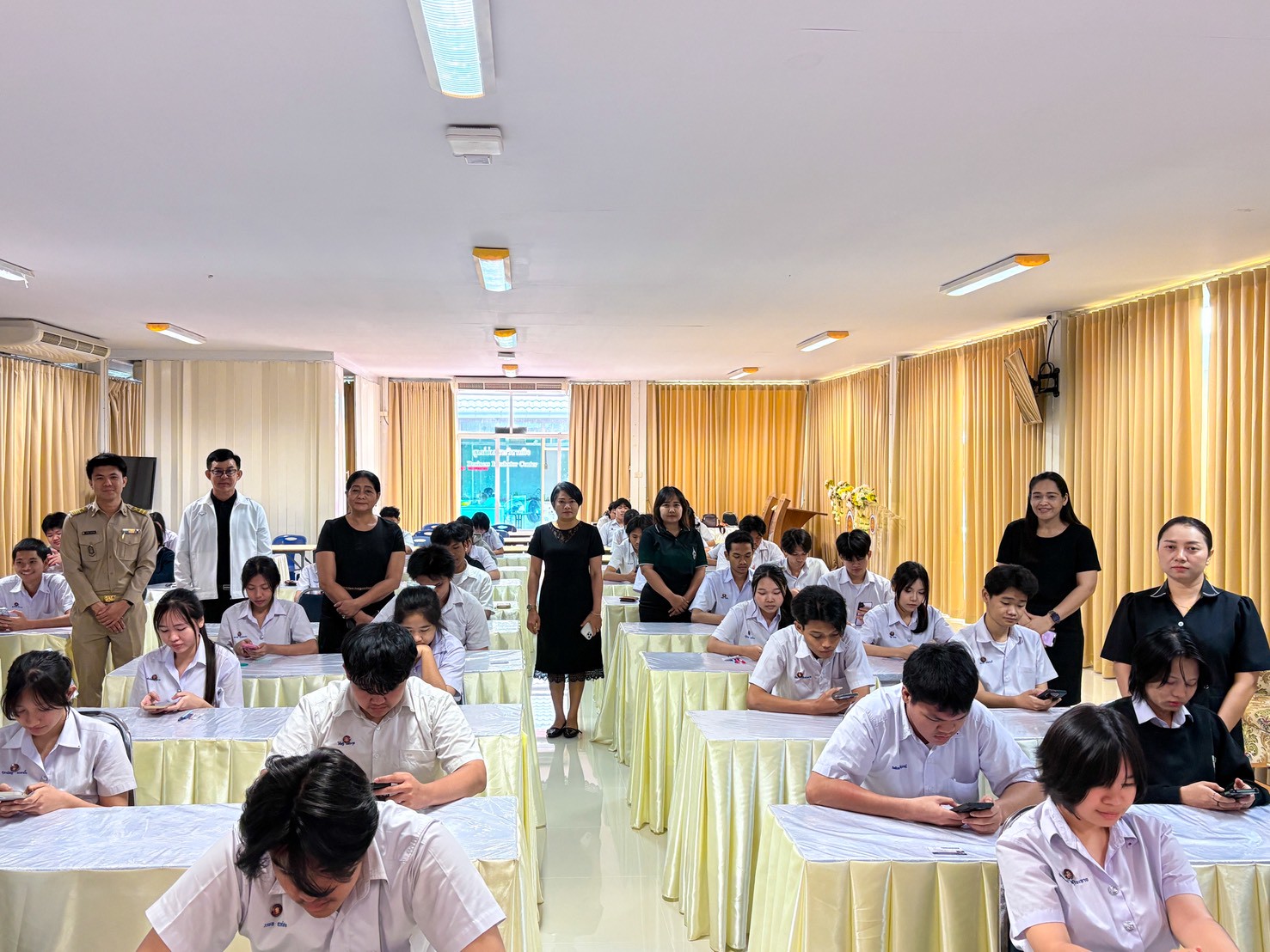 ดร.สุพจน์ ทองเหลือง ผู้อำนวยการ (วิทยฐานะเชี่ยวชาญ) วิทยาลัยอาชีวศึกษาฉะเชิงเทรา พร้อมด้วยคณะผู้บริหาร เข้าเยี่ยมชมห้องสอบและให้กำลังใจนักเรียน ในการสอบปลายภาค ภาคเรียนที่ ๒ ปีการศึกษา ๒๕๖๘ เพื่อสร้างขวัญและกำลังใจให้ผู้เข้าสอบทุกคนได้ทำข้อสอบอย่างเต็มความสามารถ ในวันที่ ๒๓ กุมภาพันธ์ ๒๕๖๙ ณ วิทยาลัยอาชีวศึกษาฉะเชิงเทรา