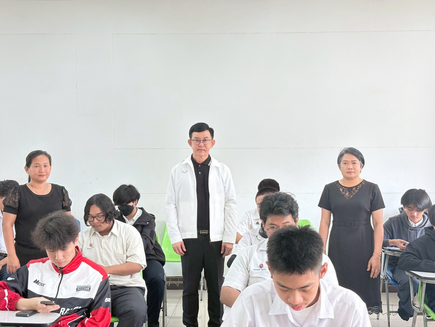ดร.สุพจน์ ทองเหลือง ผู้อำนวยการ (วิทยฐานะเชี่ยวชาญ) วิทยาลัยอาชีวศึกษาฉะเชิงเทรา พร้อมด้วยคณะผู้บริหาร เข้าเยี่ยมชมห้องสอบและให้กำลังใจนักเรียน ในการสอบปลายภาค ภาคเรียนที่ ๒ ปีการศึกษา ๒๕๖๘ เพื่อสร้างขวัญและกำลังใจให้ผู้เข้าสอบทุกคนได้ทำข้อสอบอย่างเต็มความสามารถ ในวันที่ ๒๓ กุมภาพันธ์ ๒๕๖๙ ณ วิทยาลัยอาชีวศึกษาฉะเชิงเทรา