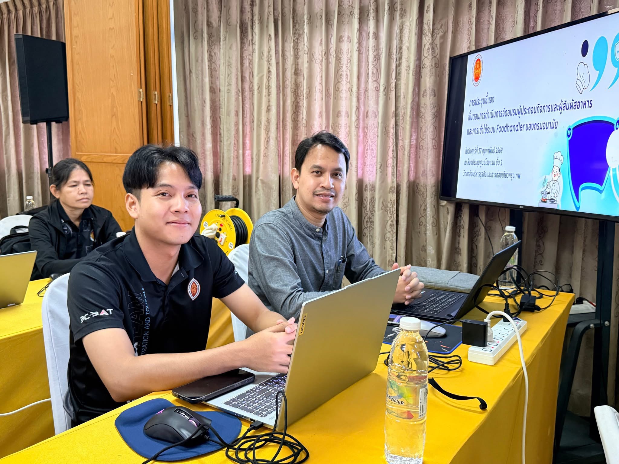 ผู้อำนวยการสำนักความร่วมมือได้มอบหมายให้ นางภัทร์ฐิรญา ทวีลาภ รองผู้อำนวยการสำนักความร่วมมือ เป็นประธานในพิธีเปิดการประชุมชี้แจงขั้นตอนการดำเนินการจัดอบรมผู้ประกอบกิจการและผู้สัมผัสอาหารและการเข้าใช้งานระบบ foodhandler ของกรมอนามัย ณ วิทยาลัยบริหารธุรกิจและการท่องเที่ยวกรุงเทพ เพื่อสร้างความรู้ ความเข้าใจให้แก่ครูผู้ประสานงานของสถานศึกษาที่มีความประสงค์เข้าร่วมการอบรมฯ รุ่นที่ 1 จำนวน 28 สถานศึกษา ระหว่างวันที่ 2-13 มีนาคม 2569