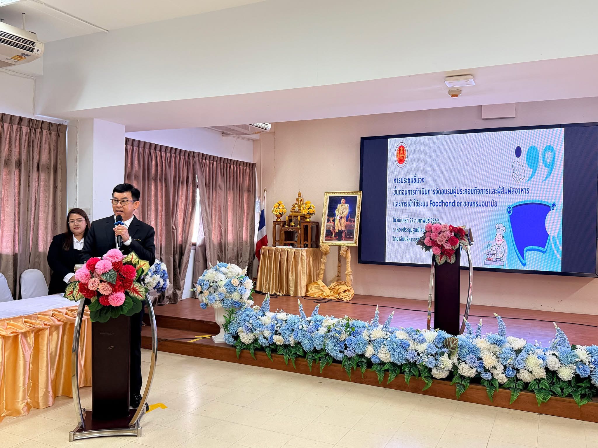 ผู้อำนวยการสำนักความร่วมมือได้มอบหมายให้ นางภัทร์ฐิรญา ทวีลาภ รองผู้อำนวยการสำนักความร่วมมือ เป็นประธานในพิธีเปิดการประชุมชี้แจงขั้นตอนการดำเนินการจัดอบรมผู้ประกอบกิจการและผู้สัมผัสอาหารและการเข้าใช้งานระบบ foodhandler ของกรมอนามัย ณ วิทยาลัยบริหารธุรกิจและการท่องเที่ยวกรุงเทพ เพื่อสร้างความรู้ ความเข้าใจให้แก่ครูผู้ประสานงานของสถานศึกษาที่มีความประสงค์เข้าร่วมการอบรมฯ รุ่นที่ 1 จำนวน 28 สถานศึกษา ระหว่างวันที่ 2-13 มีนาคม 2569