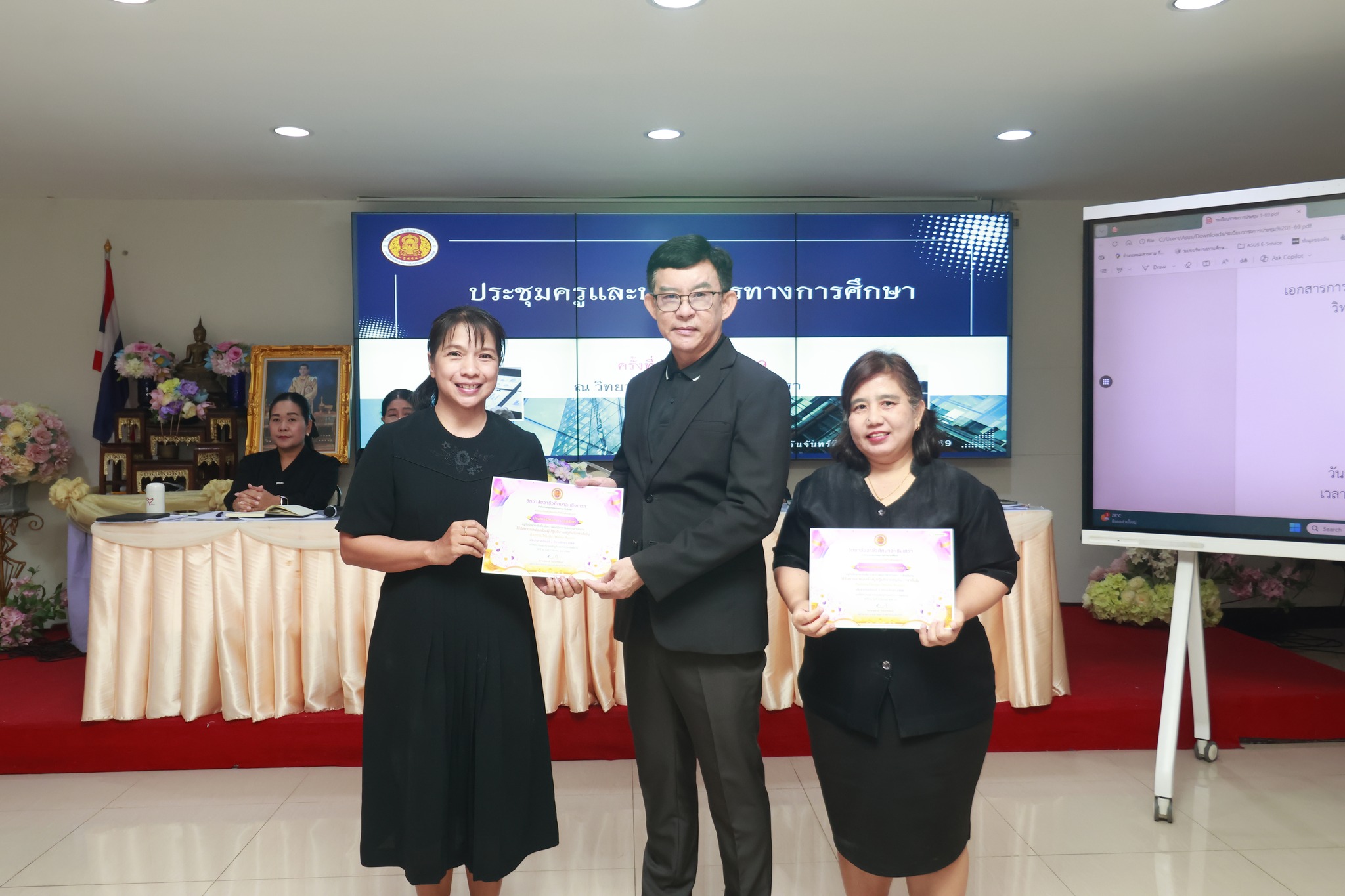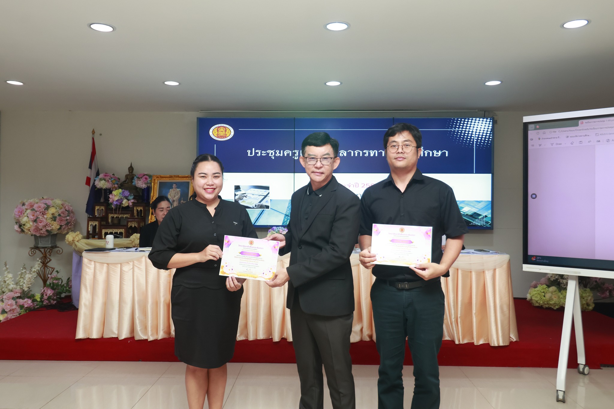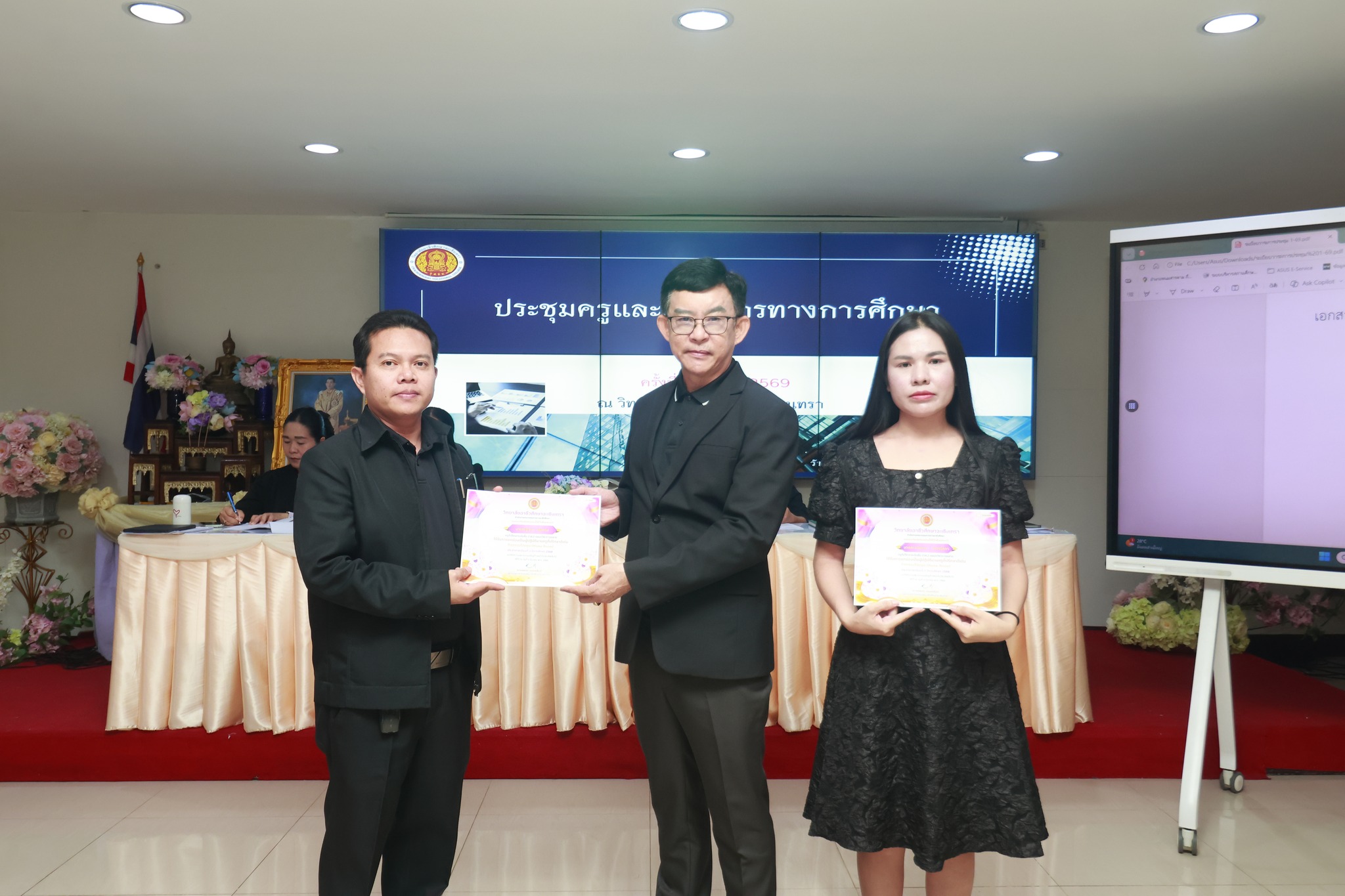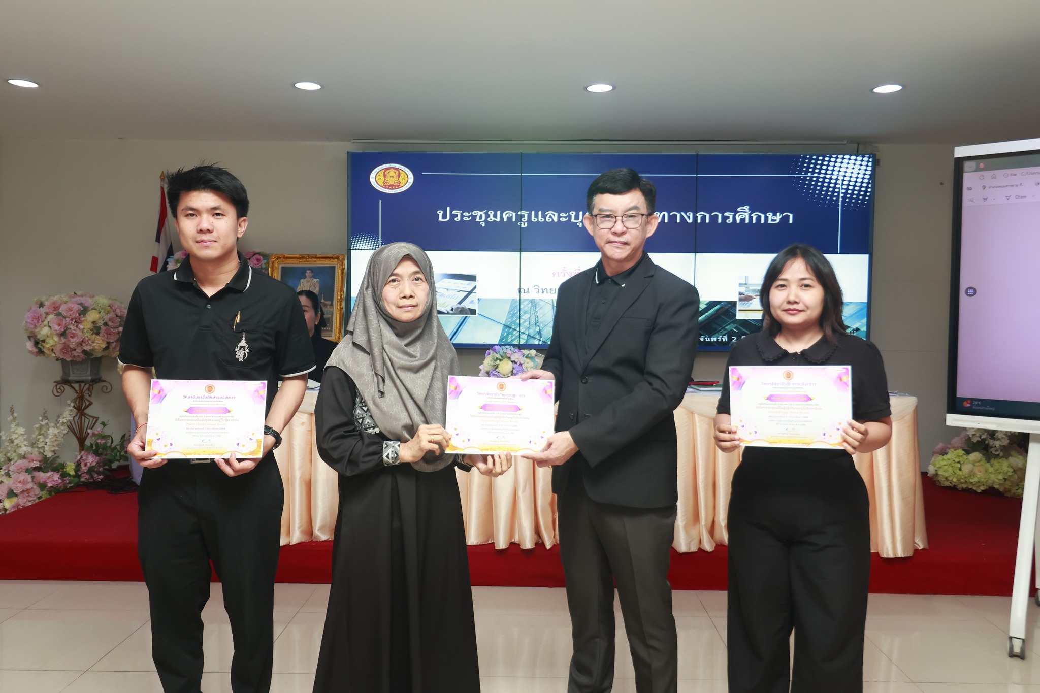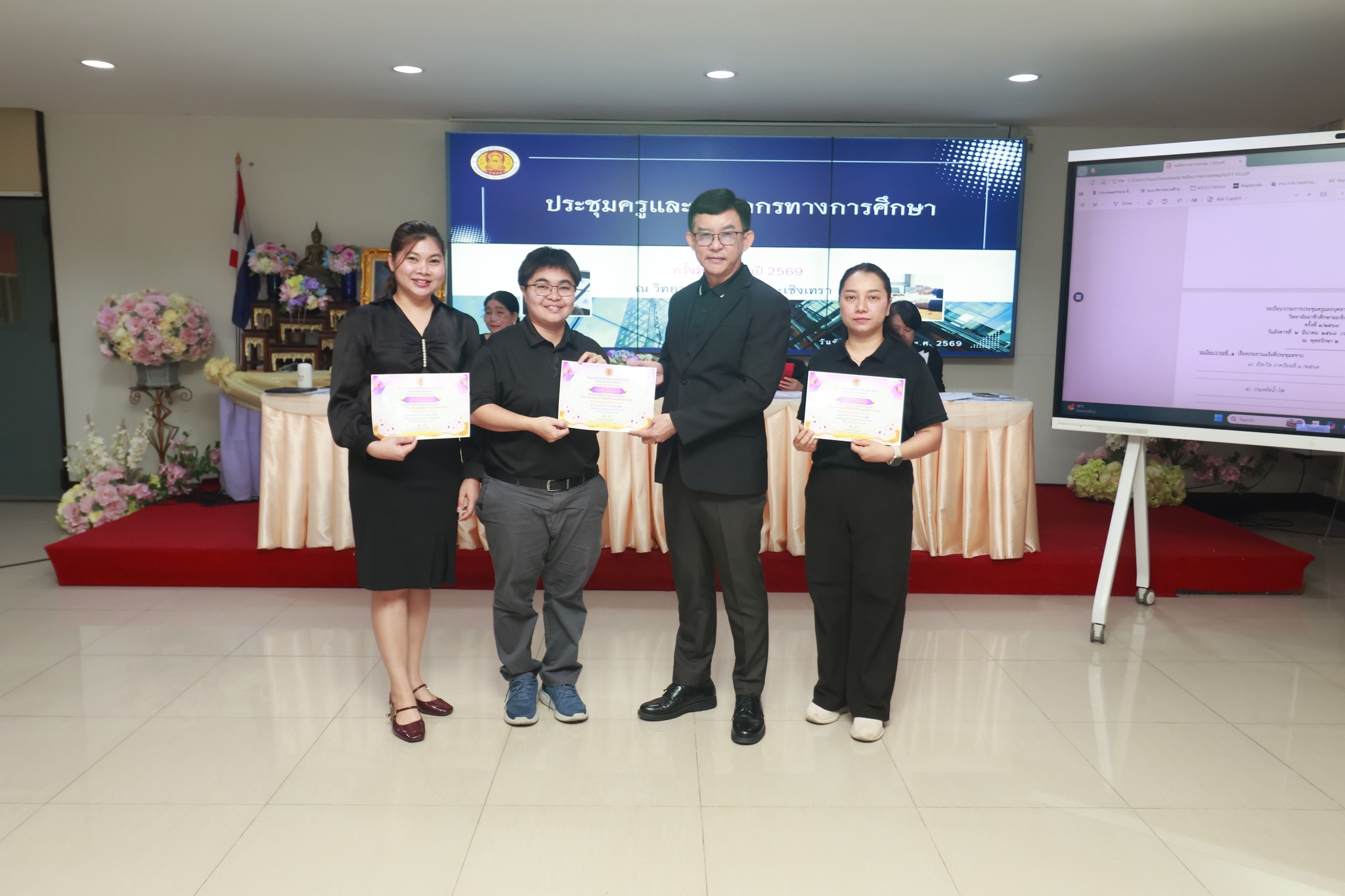 ดร.สุพจน์ ทองเหลือง ผู้อำนวยการ (วิทยฐานะเชี่ยวชาญ) วิทยาลัยอาชีวศึกษาฉะเชิงเทรา แสดงความยินดีและมอบเกียรติบัตรให้กับครู รางวัล "ครูที่ปรึกษาดีเด่น (กิจกรรมโอมรูม) " ภาคเรียนที่ ๒ ประจำปีการศึกษา ๒๕๖๘