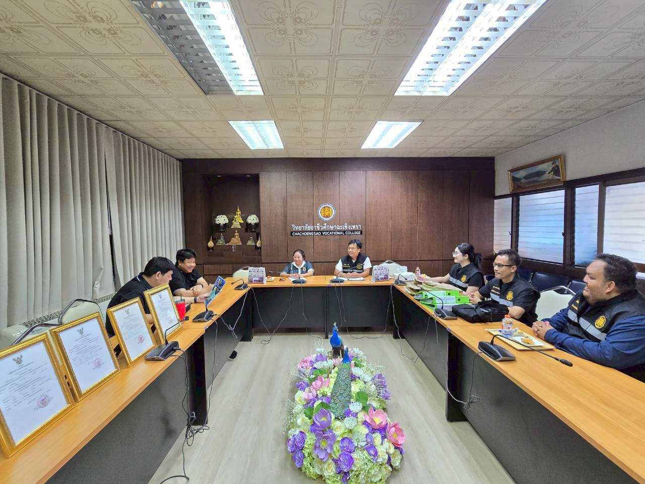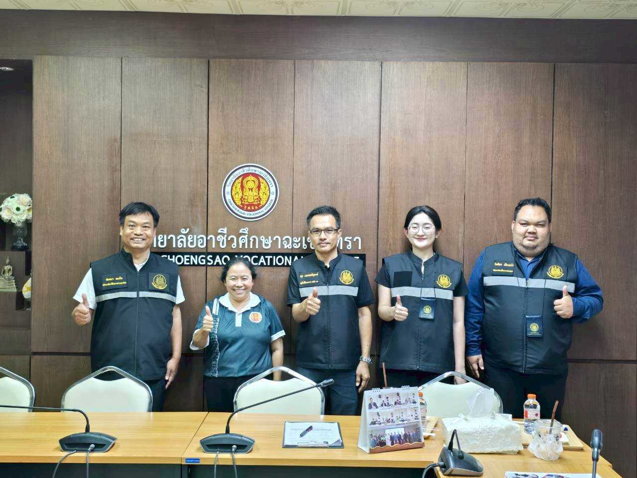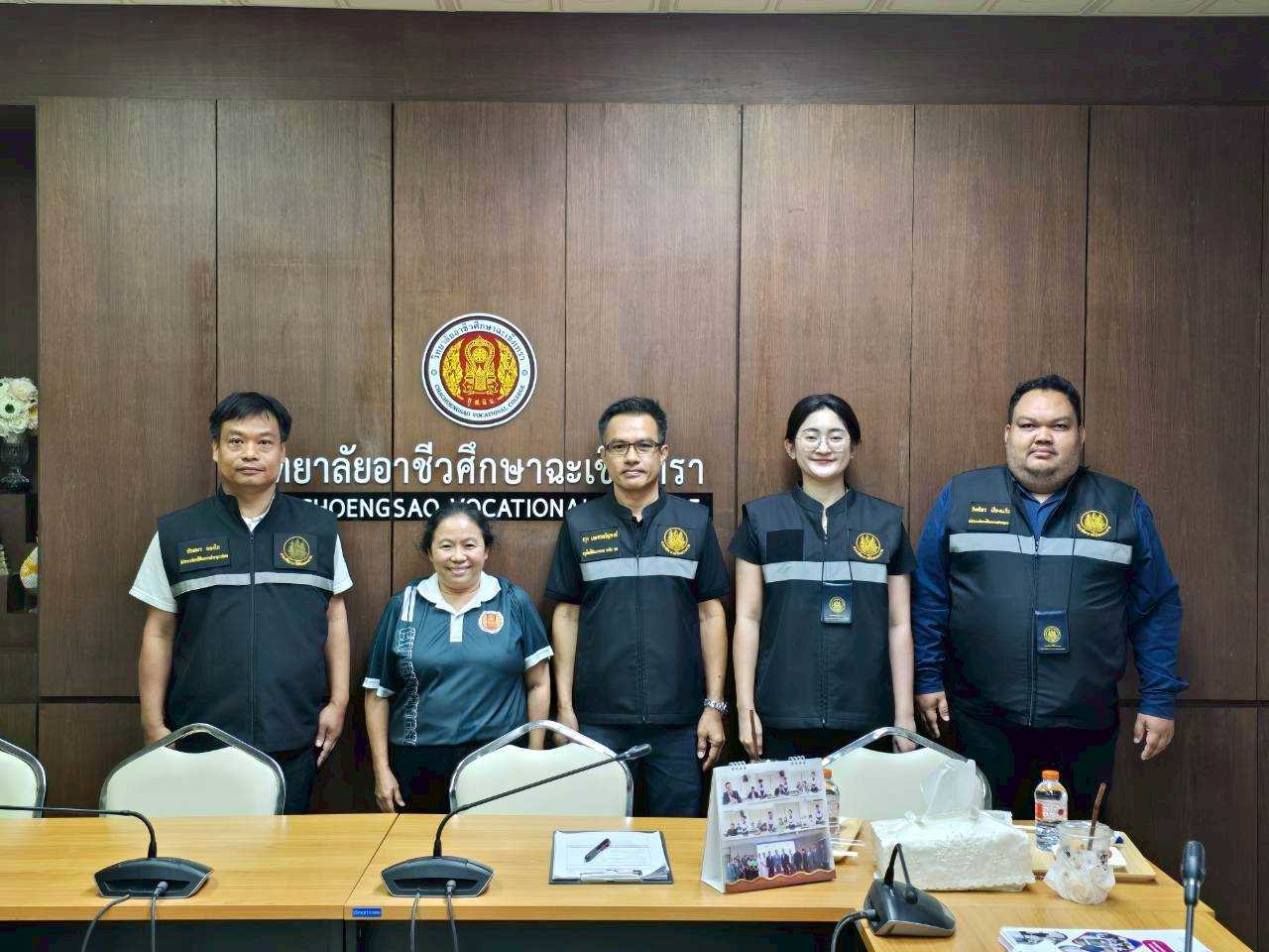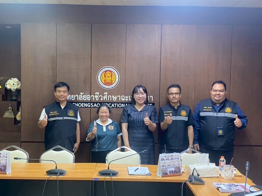 ดร.สุพจน์ ทองเหลือง ผู้อำนวยการ (วิทยฐานะเชี่ยวชาญ) วิทยาลัยอาชีวศึกษาฉะเชิงเทรา มอบหมายให้ นางสาวดวงพร ราษฎร์เจริญ พร้อมด้วยคณะครูและบุคลากรทางการศึกษา ให้การต้อนรับคณะกรรมการจากสถาบันพัฒนาฝีมือแรงงาน ๒๙ ฉะเชิงเทรา ในโอกาสเข้าตรวจตราและให้คำแนะนำสถานประกอบกิจการ