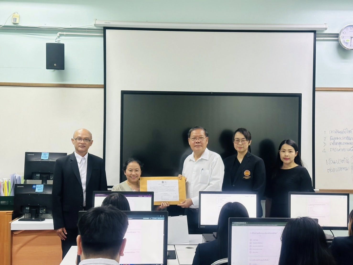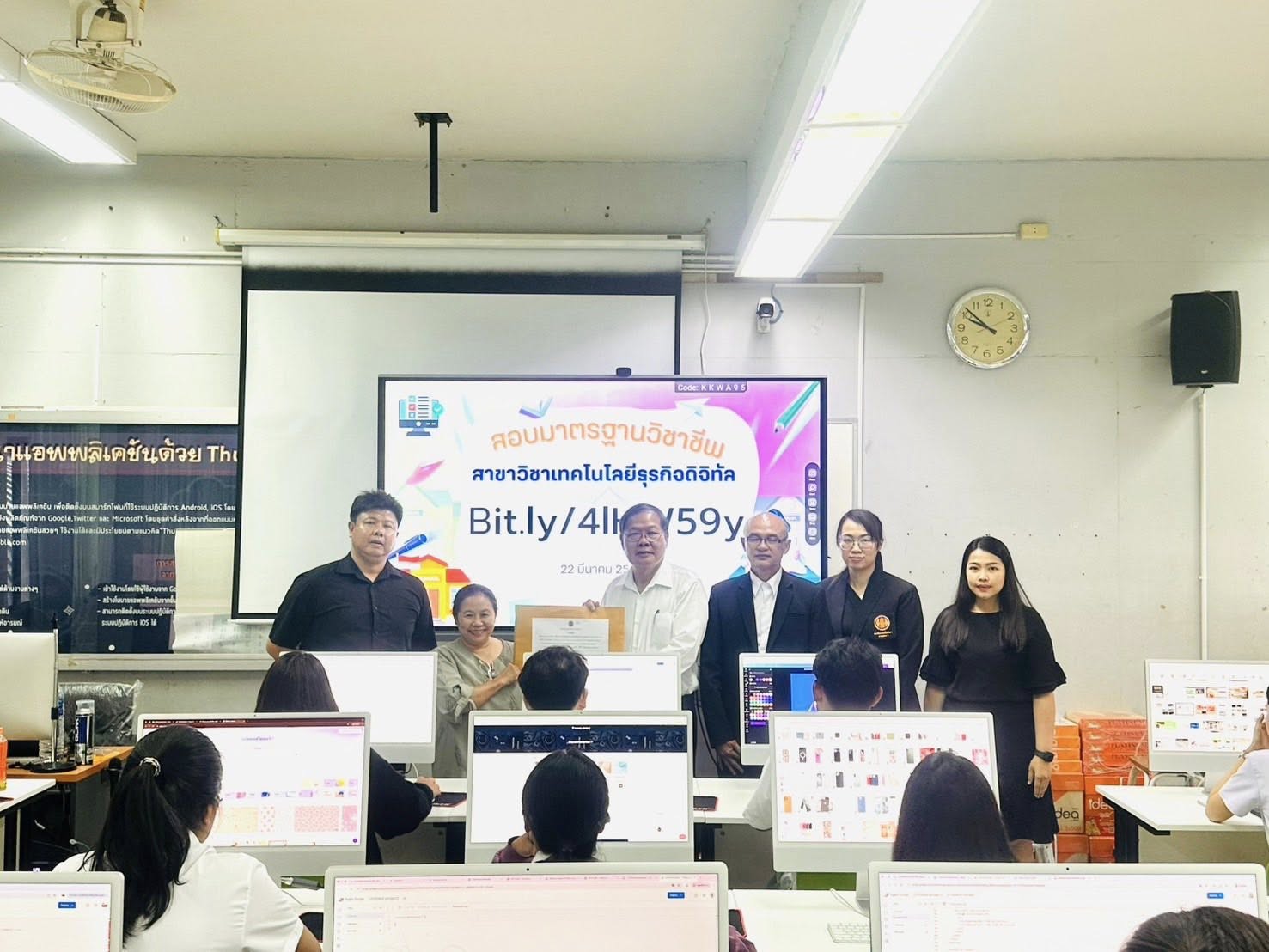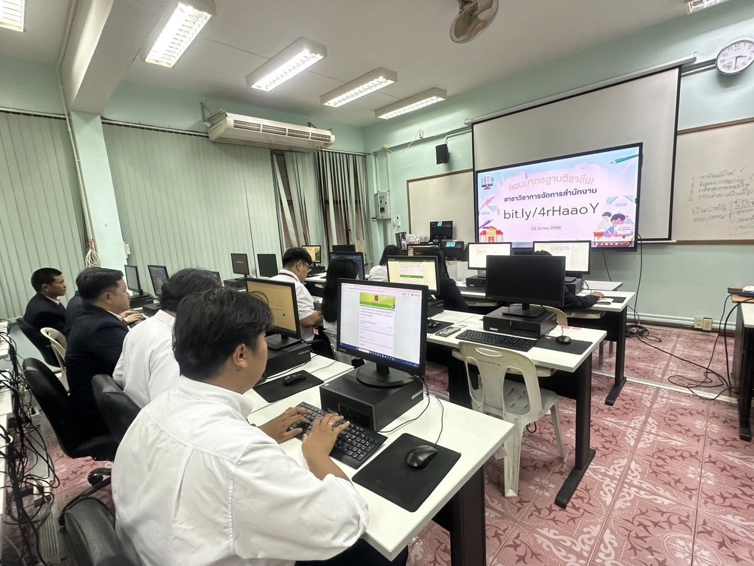 ดร.สุพจน์ ทองเหลือง ผู้อำนวยการ (วิทยฐานะเชี่ยวชาญ) วิทยาลัยอาชีวศึกษาฉะเชิงเทรา พร้อมด้วยคณะผู้บริหารและคณะครู ร่วมกับสถาบันการอาชีวศึกษาภาคกลาง 3 ดำเนินการจัดสอบมาตรฐานวิชาชีพ ให้กับนักศึกษาระดับปริญญาตรี สายเทคโนโลยีหรือสายปฏิบัติการ สาขาวิชาเทคโนโลยีธุรกิจดิจิทัล และสาขาวิชาการจัดการสำนักงาน ประจําปีการศึกษา 2568 ณ วิทยาลัยอาชีวศึกษาฉะเชิงเทรา
