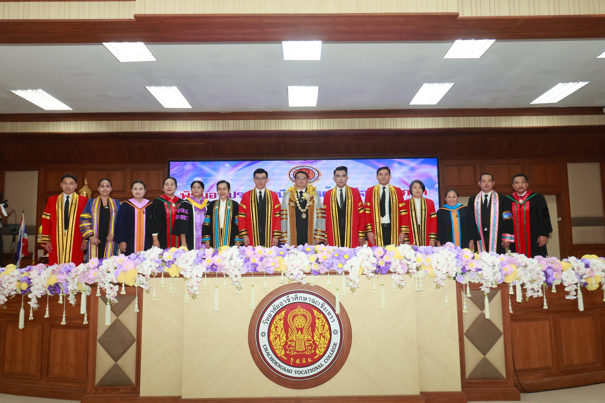 วิทยาลัยอาชีวศึกษาฉะเชิงเทรา นำโดย ดร.สุพจน์ ทองเหลือง (วิทยฐานะเชี่ยวชาญ) ผู้อำนวยการวิทยาลัยอาชีวศึกษาฉะเชิงเทรา พร้อมด้วยคณะผู้บริหาร ข้าราชการครู และบุคลากรทางการศึกษา จัดพิธีมอบประกาศนียบัตร ผู้สำเร็จการศึกษา ประจำปีการศึกษา ๒๕๖๘ ในวันที่ ๒๙ มีนาคม ๒๕๖๙ ณ วิทยาลัยเทคนิคฉะเชิงเทรา