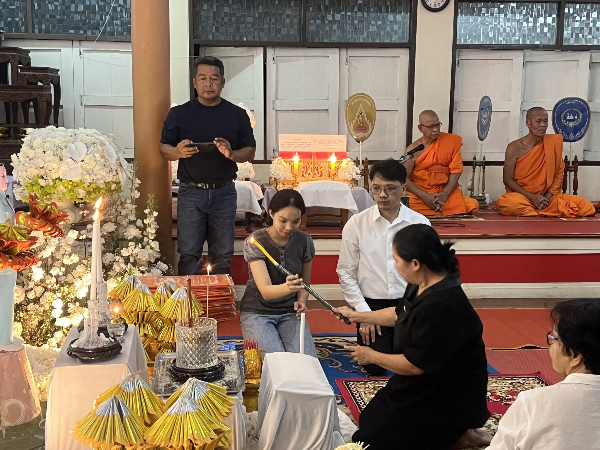 เป็นเจ้าภาพสวดพระอภิธรรมศพ คุณพ่อสัมพันธ์ุ เส็งหะพันธ์ุ บิดาของอาจารย์ พงษ์ศักดิ์ เส็งหะพันธ์ ครูวิทยาลัยอาชีวศึกษาฉะเชิงเทรา