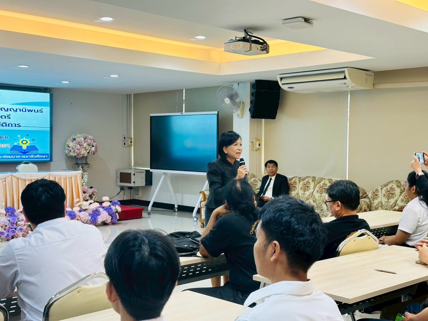 ดร.สุพจน์ ทองเหลือง ผู้อำนวยการ (วิทยฐานะเชี่ยวชาญ) วิทยาลัยอาชีวศึกษาฉะเชิงเทรา พร้อมด้วยคณะผู้บริหารและคณะครู นำนักศึกษา ระดับปริญญาตรี ชั้นปีที่ 2 เข้าร่วมโครงการโครงการพัฒนาทักษะการเขียนปริญญานิพนธ์สำหรับนักศึกษาปริญญาตรี สายเทคโนโลยีหรือสายปฏิบัติการ