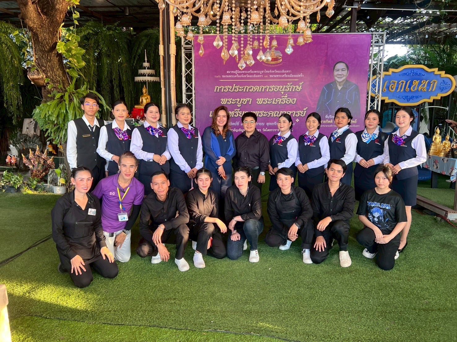 ดร.สุพจน์ ทองเหลือง ผู้อำนวยการ (วิทยฐานะเชี่ยวชาญ) วิทยาลัยอาชีวศึกษาฉะเชิงเทรา มอบหมายให้ นางสาวลลิดา ธรรมรส หัวหน้าแผนกวิชาการโรงแรม นำนักเรียน นักศึกษา แผนกวิชาการโรงแรม จำนวน ๒๐ คน บริการอาหารและเครื่องดื่ม เนื่องในงานการประกวดอนุรักษ์พระบูชา พระเครื่อง และเหรียญพระคณาจารย์ ให้กับผู้เข้าร่วมงาน จำนวน ๔๐๐ คน