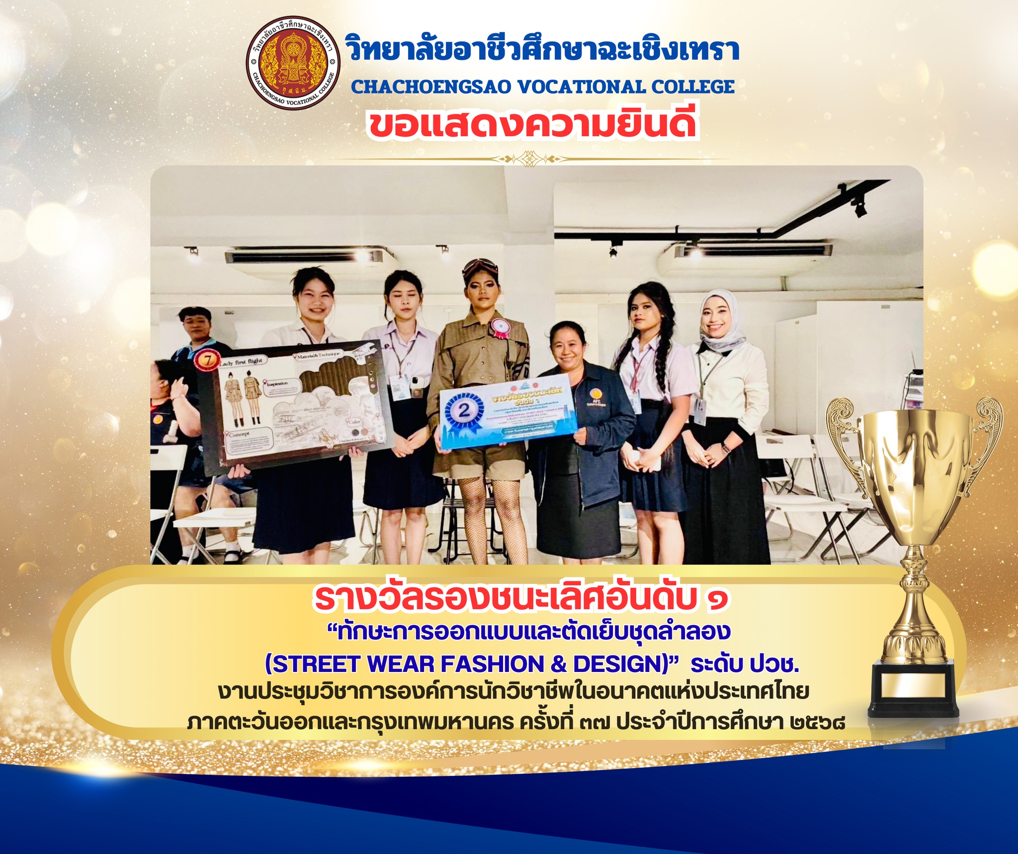 (STREET WEAR FASHION & DESIGN)” ระดับ ปวช. ได้รับรางวัลรองชนะเลิศอันดับ 1
