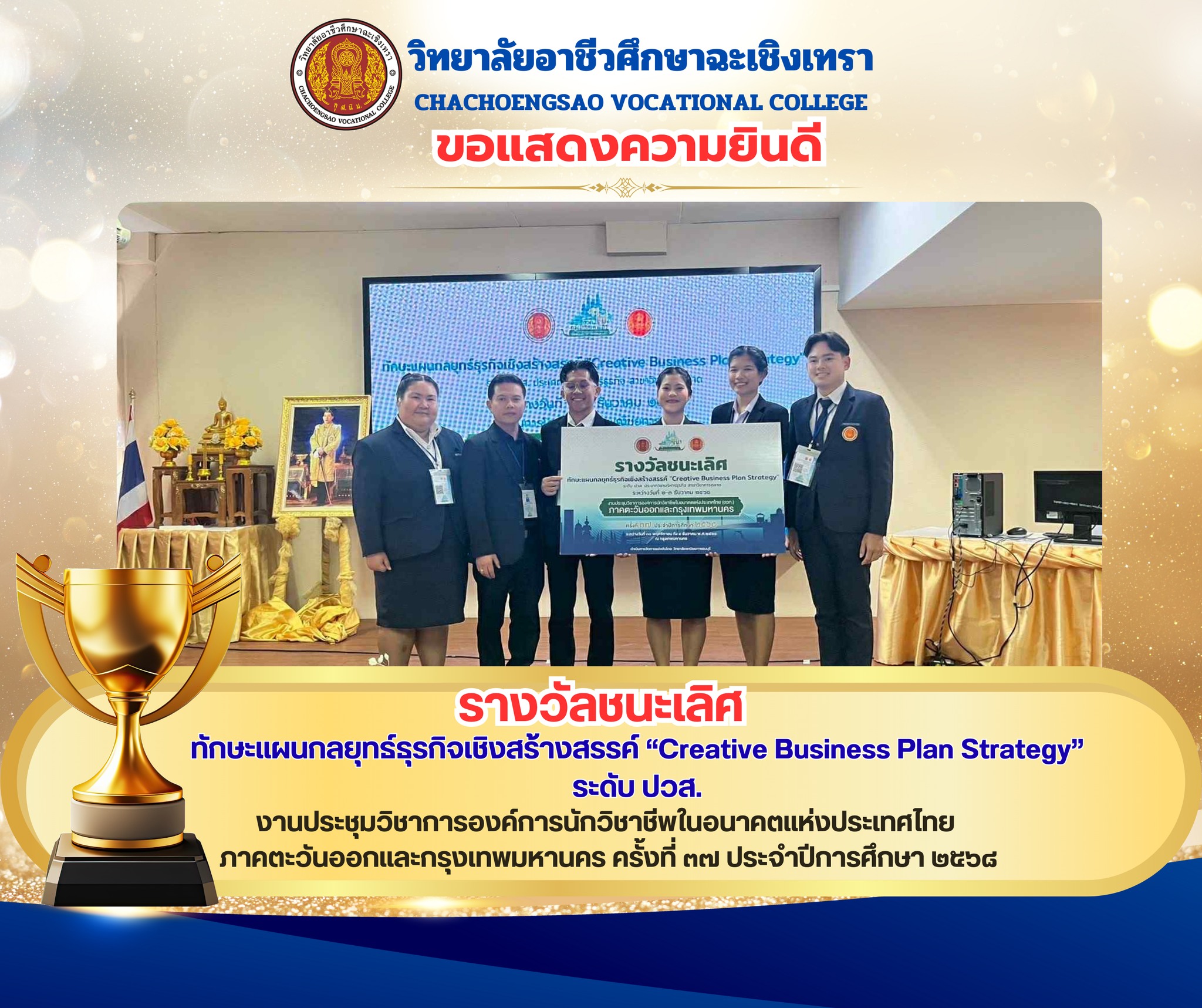 ได้รับรางวัล ชนะเลิศ ทักษะแผนกลยุทธ์ธุรกิจเชิงสร้างสรรค์ “Creative Business Plan Strategy”