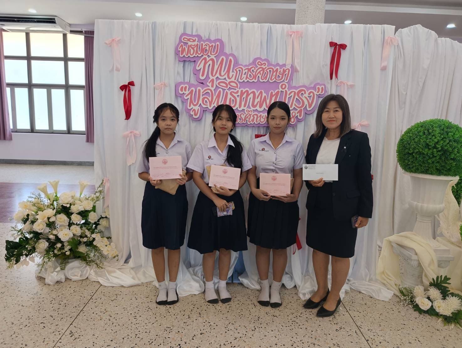 นักเรียนเข้ารับทุนการศึกษา จำนวน ๕,๔๐๐ บาท จากมูลนิธิเทพบำรุง ณ โรงเรียนวัดโสธรวรารามวรวิหาร