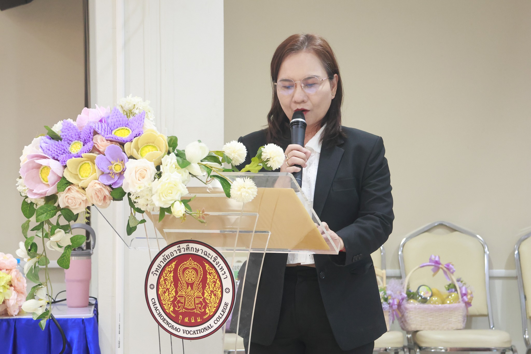 ดร.สุพจน์ ทองเหลือง ผู้อำนวยการ(วิทยฐานะเชี่ยวชาญ) วิทยาลัยอาชีวศึกษาฉะเชิงเทรา เป็นประธานในพิธีเปิดการอบรมโครงการขยายและยกระดับการจัดการอาชีวศึกษาระบบทวิภาคีสู่การผลิตและพัฒนากำลังคนอาชีวศึกษาสมรรนะสูง ประจำปีการศึกษา พ.ศ.๒๕๖๙ หลักสูตร “ready to work : อัพเกรด soft skill เตรียมความพร้อมสู่โลกการทำงานระดับมืออาชีพ”